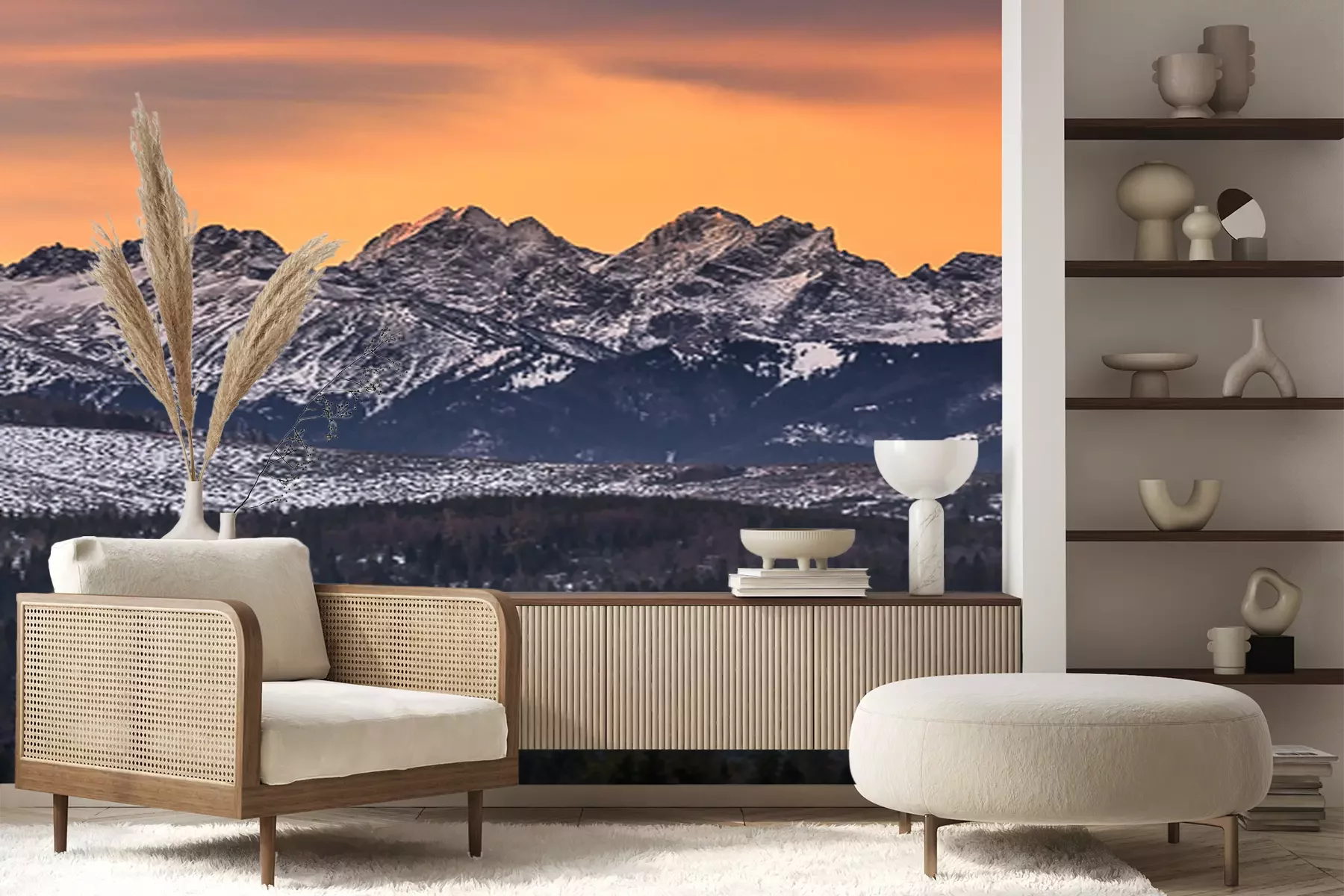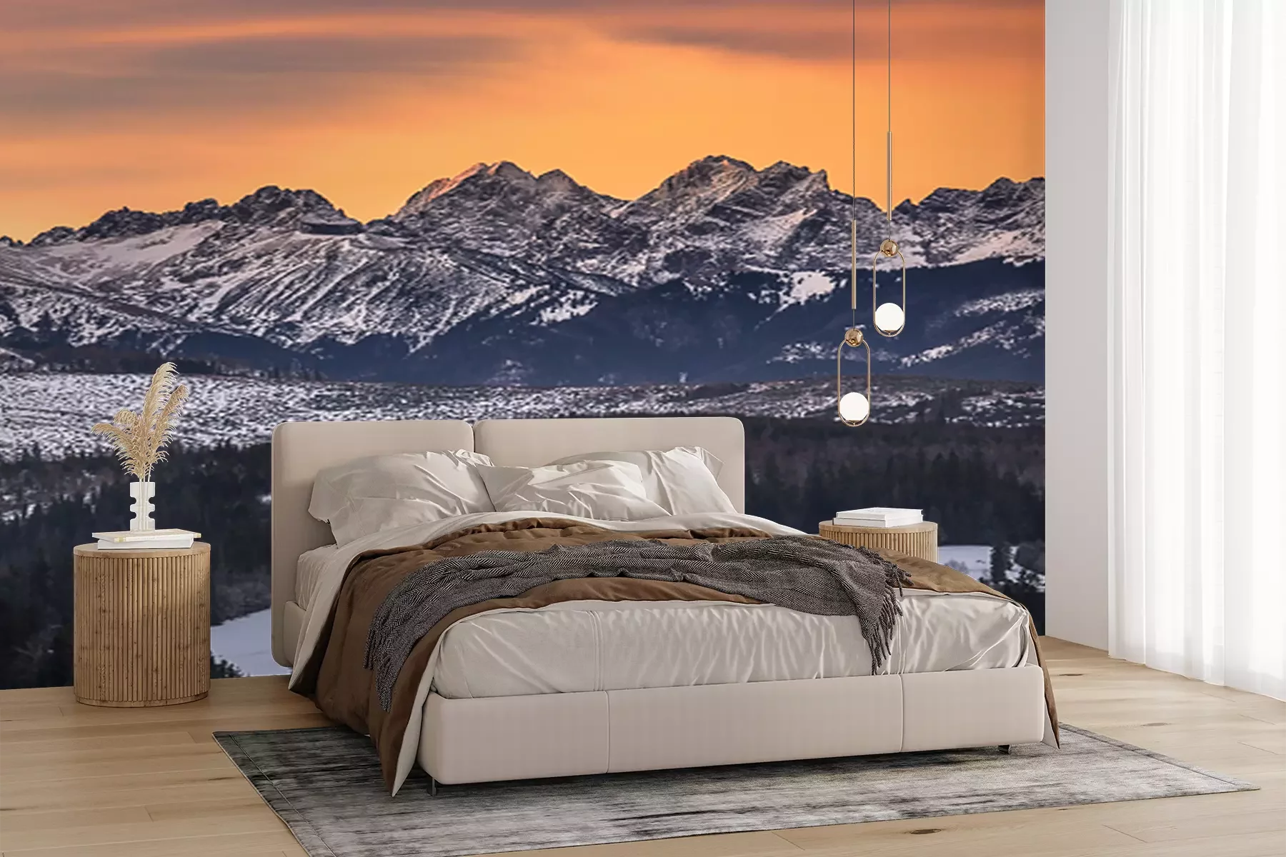 Het materiaal Premium+ is een gestructureerd vinyl op vlies met een gewicht van 255 g/m², dat kleine oneffenheden in de muur effectief camoufleert. De subtiele structuur van fijn zand geeft het oppervlak een exclusieve uitstraling, terwijl de halfmatte afwerking de diepte van de kleuren benadrukt. Het materiaal is dampdoorlatend, waardoor het ook in de keuken en badkamer kan worden gebruikt. De maximale breedte van één baan bedraagt 100 cm – bij grotere afmetingen wordt het fotobehang in meerdere gelijke banen verdeeld. De lijm wordt direct op de muur aangebracht en het behang wordt rand-aan-rand geplakt, wat zorgt voor een esthetisch resultaat zonder zichtbare naden. Het oppervlak kan gemakkelijk worden schoongemaakt door het voorzichtig af te nemen met een vochtige doek.