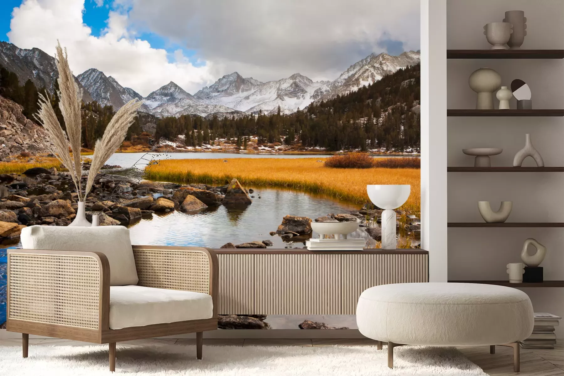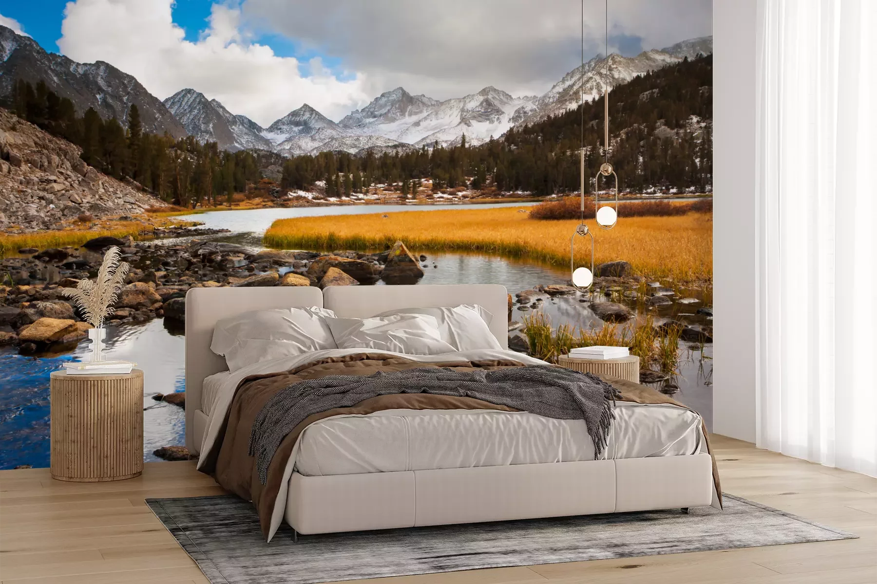 Het materiaal Premium+ is een gestructureerd vinyl op vlies met een gewicht van 255 g/m², dat kleine oneffenheden in de muur effectief camoufleert. De subtiele structuur van fijn zand geeft het oppervlak een exclusieve uitstraling, terwijl de halfmatte afwerking de diepte van de kleuren benadrukt. Het materiaal is dampdoorlatend, waardoor het ook in de keuken en badkamer kan worden gebruikt. De maximale breedte van één baan bedraagt 100 cm – bij grotere afmetingen wordt het fotobehang in meerdere gelijke banen verdeeld. De lijm wordt direct op de muur aangebracht en het behang wordt rand-aan-rand geplakt, wat zorgt voor een esthetisch resultaat zonder zichtbare naden. Het oppervlak kan gemakkelijk worden schoongemaakt door het voorzichtig af te nemen met een vochtige doek.