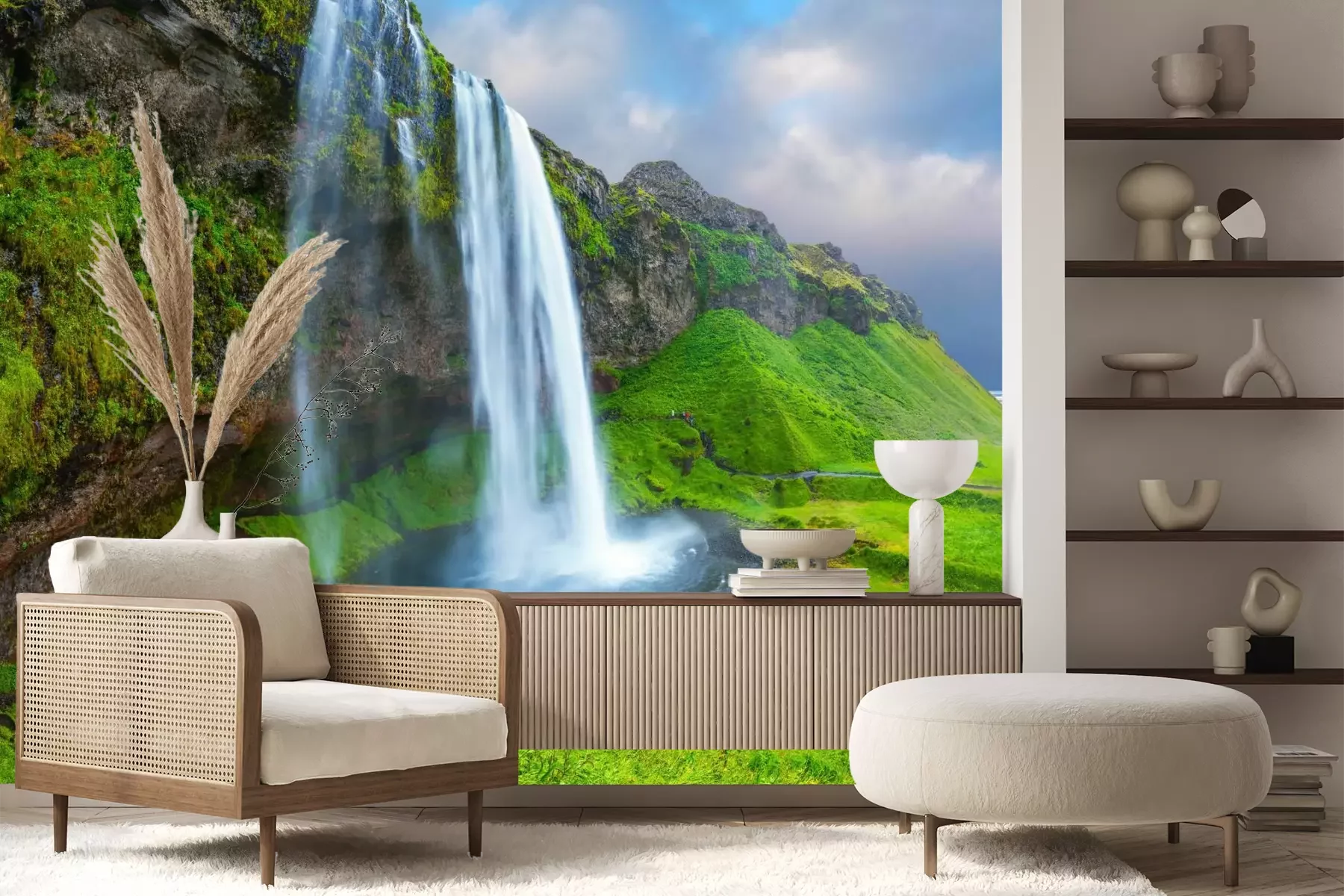 Het materiaal Premium+ is een gestructureerd vinyl op vlies met een gewicht van 255 g/m², dat kleine oneffenheden in de muur effectief camoufleert. De subtiele structuur van fijn zand geeft het oppervlak een exclusieve uitstraling, terwijl de halfmatte afwerking de diepte van de kleuren benadrukt. Het materiaal is dampdoorlatend, waardoor het ook in de keuken en badkamer kan worden gebruikt. De maximale breedte van één baan bedraagt 100 cm – bij grotere afmetingen wordt het fotobehang in meerdere gelijke banen verdeeld. De lijm wordt direct op de muur aangebracht en het behang wordt rand-aan-rand geplakt, wat zorgt voor een esthetisch resultaat zonder zichtbare naden. Het oppervlak kan gemakkelijk worden schoongemaakt door het voorzichtig af te nemen met een vochtige doek.