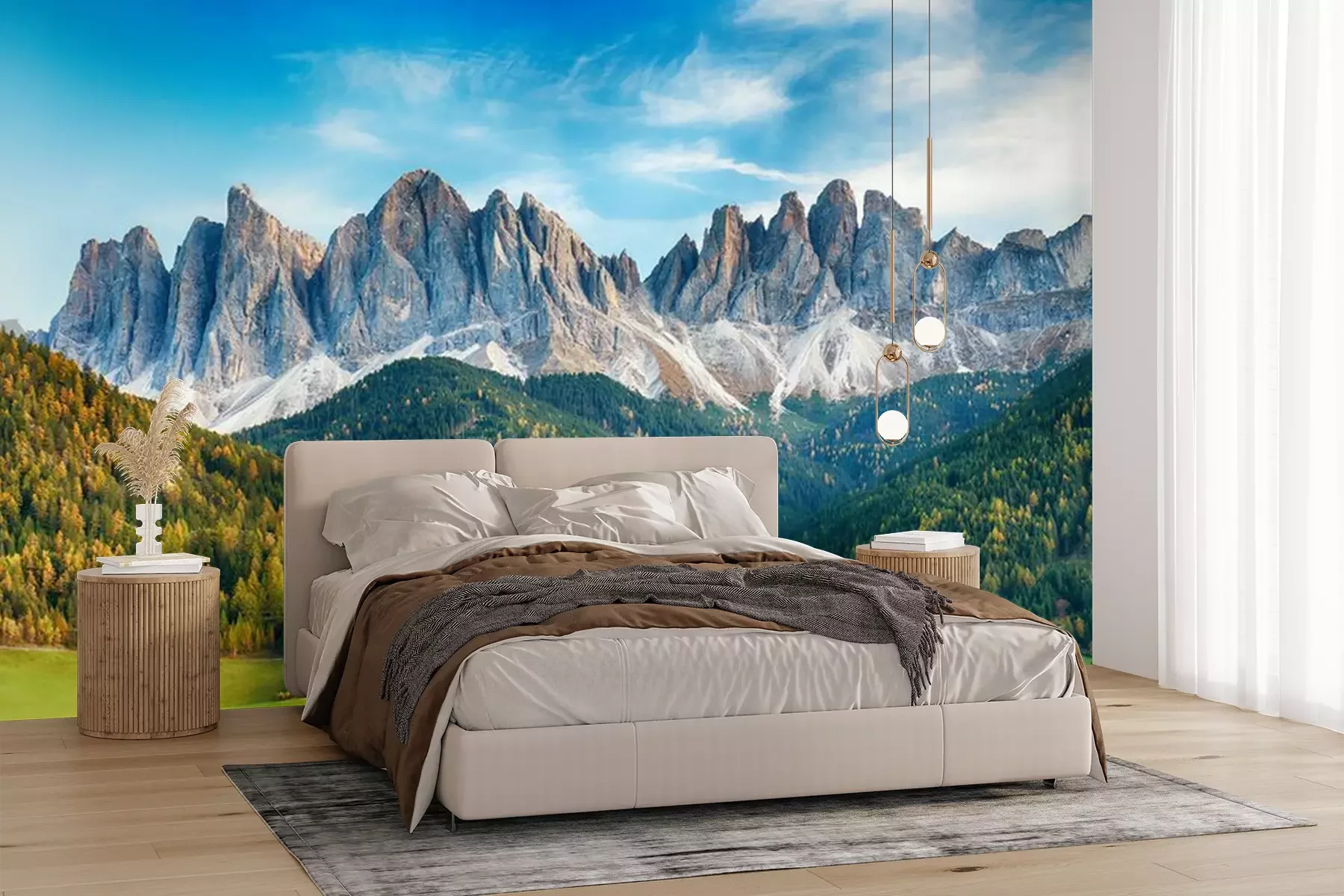 Het materiaal Premium+ is een gestructureerd vinyl op vlies met een gewicht van 255 g/m², dat kleine oneffenheden in de muur effectief camoufleert. De subtiele structuur van fijn zand geeft het oppervlak een exclusieve uitstraling, terwijl de halfmatte afwerking de diepte van de kleuren benadrukt. Het materiaal is dampdoorlatend, waardoor het ook in de keuken en badkamer kan worden gebruikt. De maximale breedte van één baan bedraagt 100 cm – bij grotere afmetingen wordt het fotobehang in meerdere gelijke banen verdeeld. De lijm wordt direct op de muur aangebracht en het behang wordt rand-aan-rand geplakt, wat zorgt voor een esthetisch resultaat zonder zichtbare naden. Het oppervlak kan gemakkelijk worden schoongemaakt door het voorzichtig af te nemen met een vochtige doek.