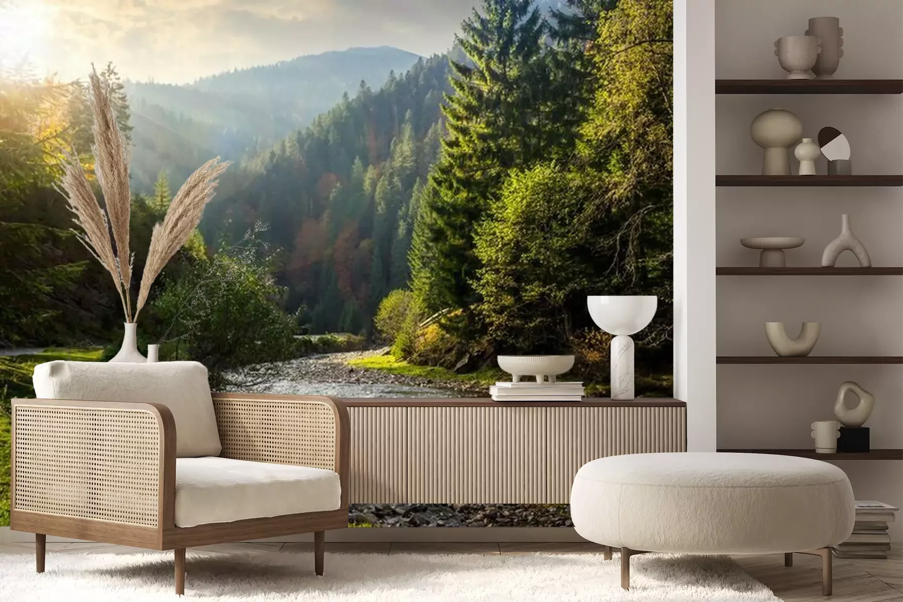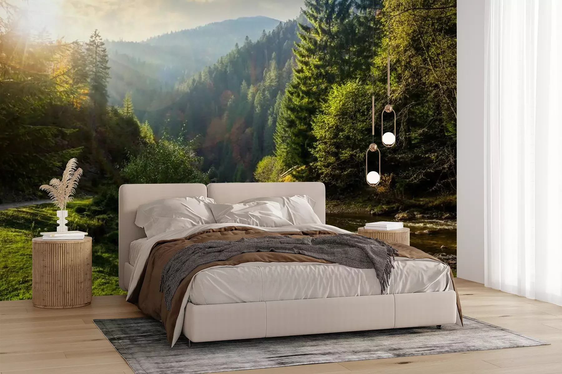 Het materiaal Premium+ is een gestructureerd vinyl op vlies met een gewicht van 255 g/m², dat kleine oneffenheden in de muur effectief camoufleert. De subtiele structuur van fijn zand geeft het oppervlak een exclusieve uitstraling, terwijl de halfmatte afwerking de diepte van de kleuren benadrukt. Het materiaal is dampdoorlatend, waardoor het ook in de keuken en badkamer kan worden gebruikt. De maximale breedte van één baan bedraagt 100 cm – bij grotere afmetingen wordt het fotobehang in meerdere gelijke banen verdeeld. De lijm wordt direct op de muur aangebracht en het behang wordt rand-aan-rand geplakt, wat zorgt voor een esthetisch resultaat zonder zichtbare naden. Het oppervlak kan gemakkelijk worden schoongemaakt door het voorzichtig af te nemen met een vochtige doek.