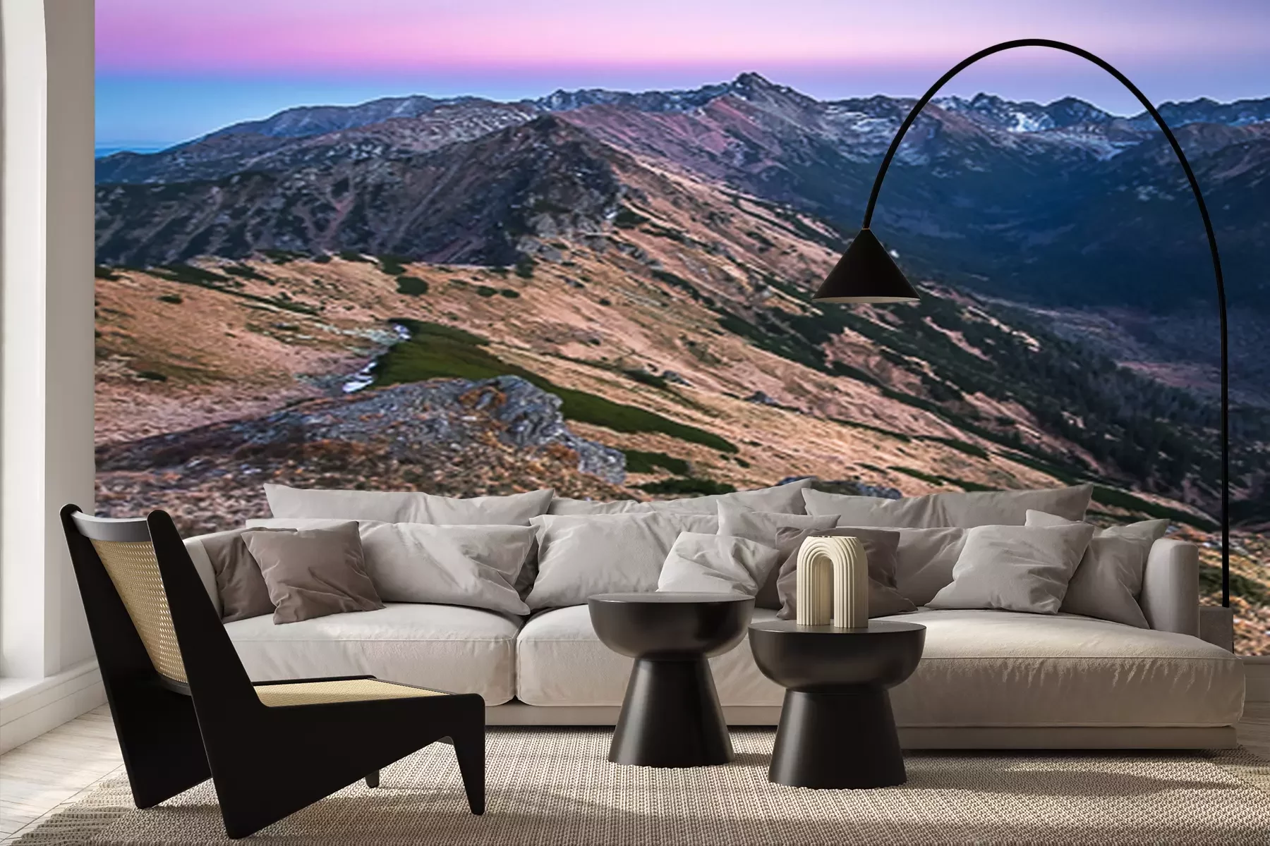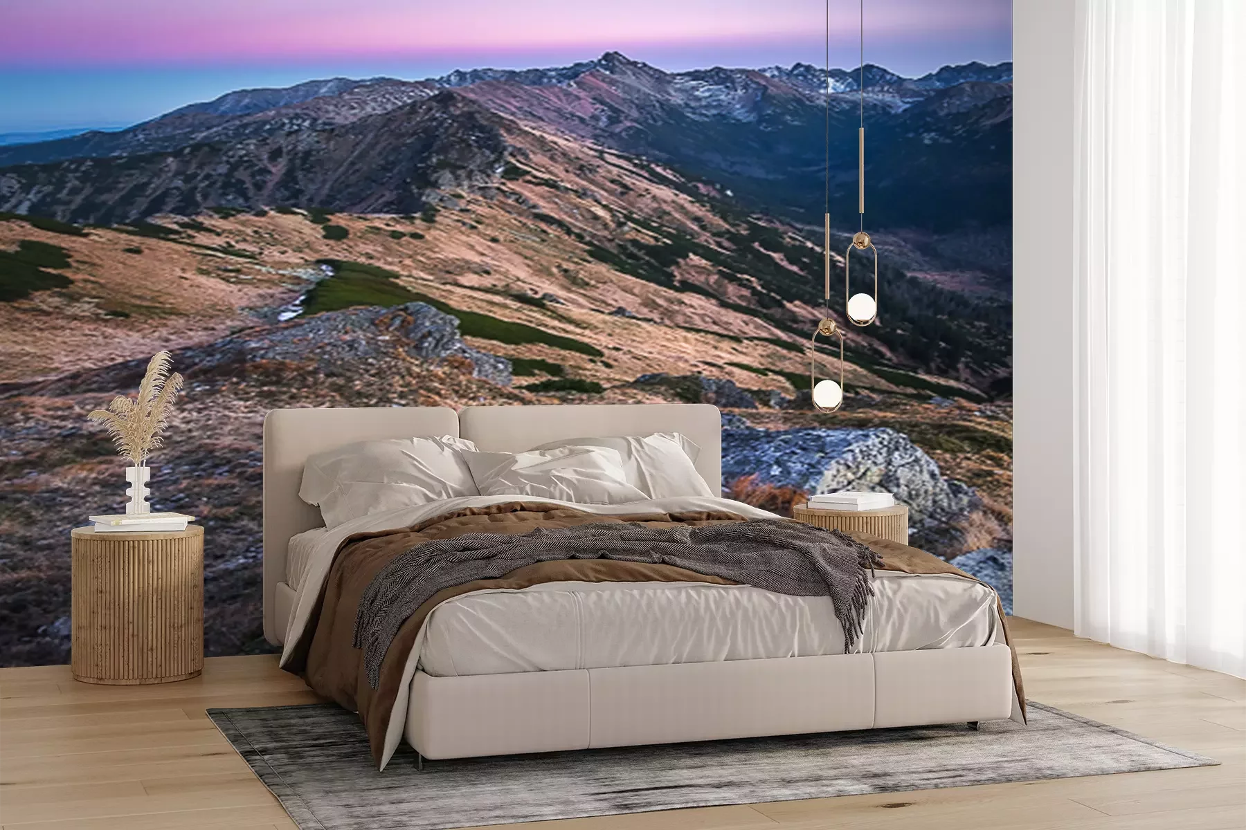 Het materiaal Premium+ is een gestructureerd vinyl op vlies met een gewicht van 255 g/m², dat kleine oneffenheden in de muur effectief camoufleert. De subtiele structuur van fijn zand geeft het oppervlak een exclusieve uitstraling, terwijl de halfmatte afwerking de diepte van de kleuren benadrukt. Het materiaal is dampdoorlatend, waardoor het ook in de keuken en badkamer kan worden gebruikt. De maximale breedte van één baan bedraagt 100 cm – bij grotere afmetingen wordt het fotobehang in meerdere gelijke banen verdeeld. De lijm wordt direct op de muur aangebracht en het behang wordt rand-aan-rand geplakt, wat zorgt voor een esthetisch resultaat zonder zichtbare naden. Het oppervlak kan gemakkelijk worden schoongemaakt door het voorzichtig af te nemen met een vochtige doek.