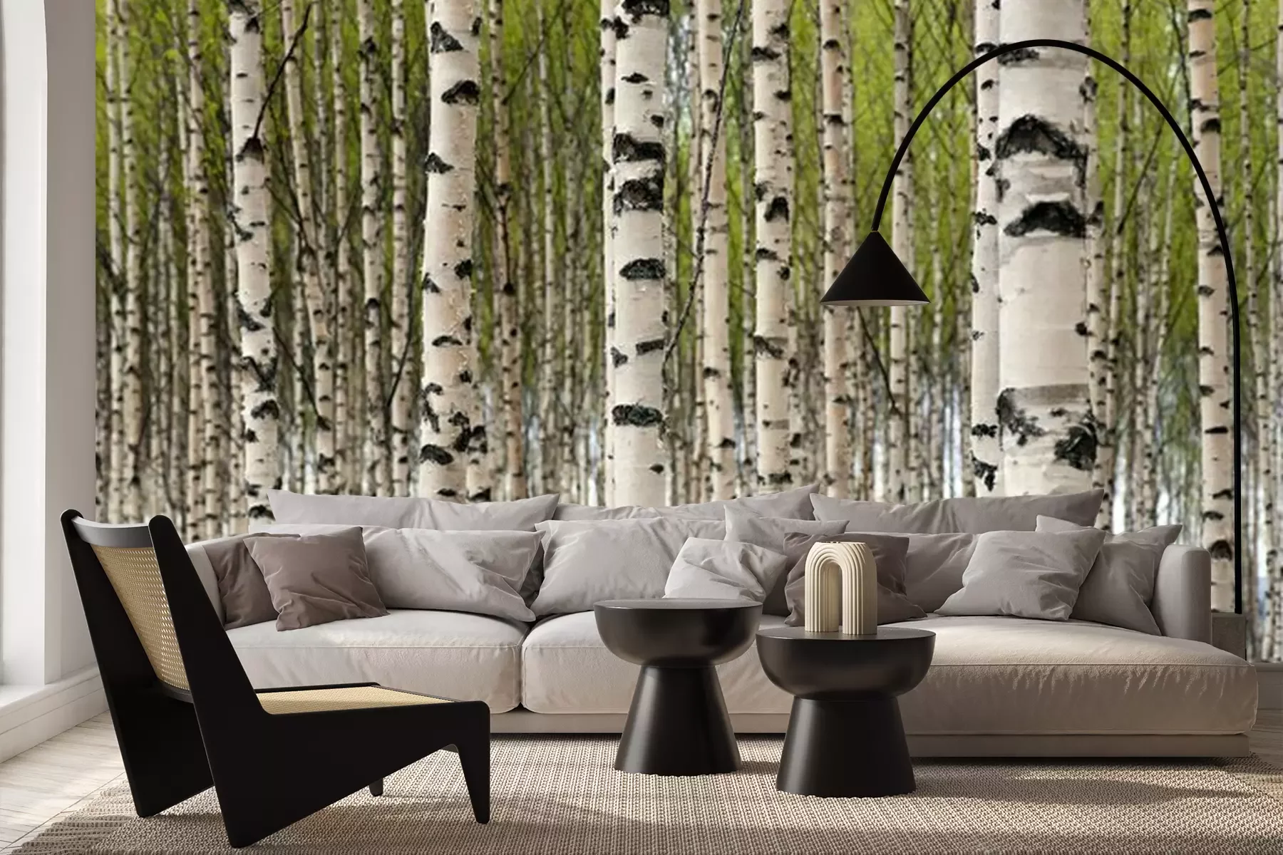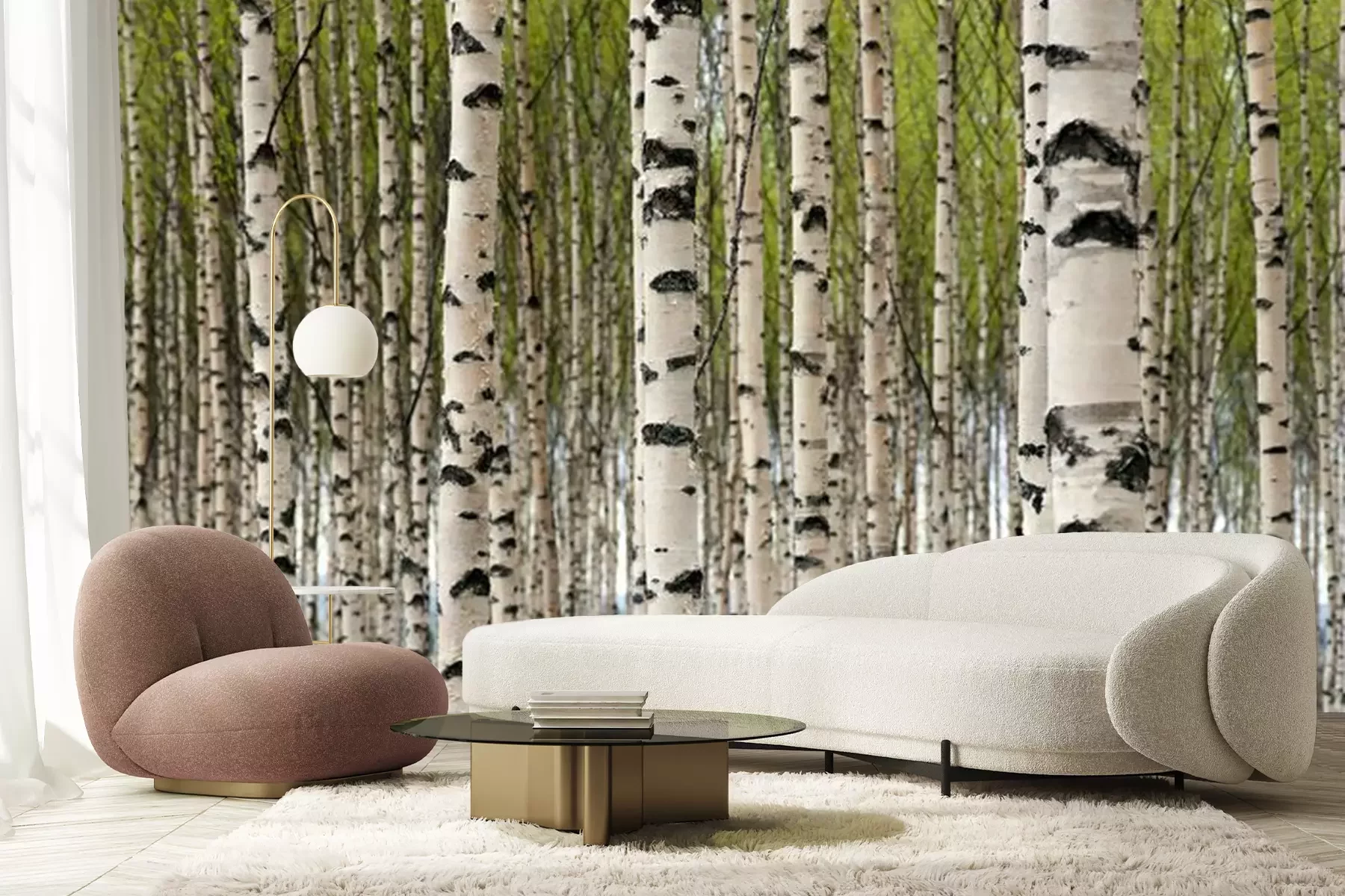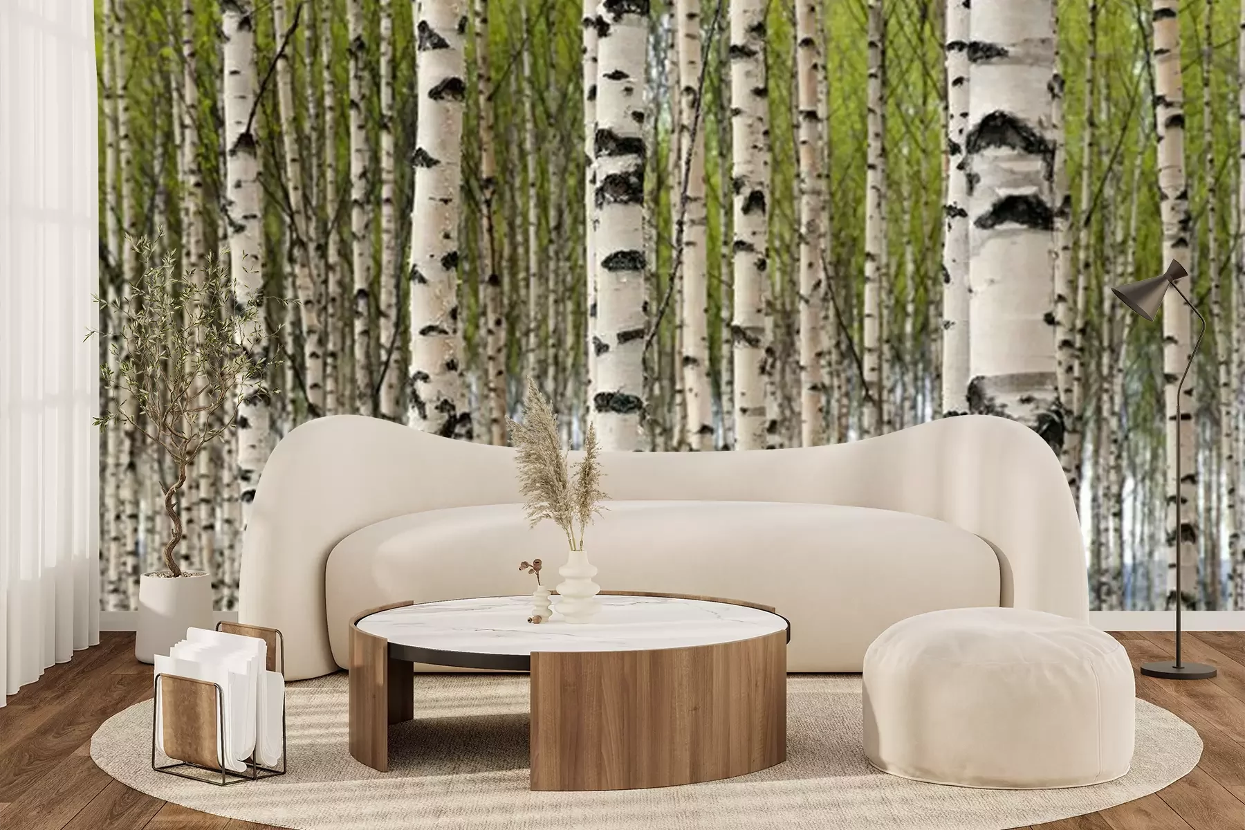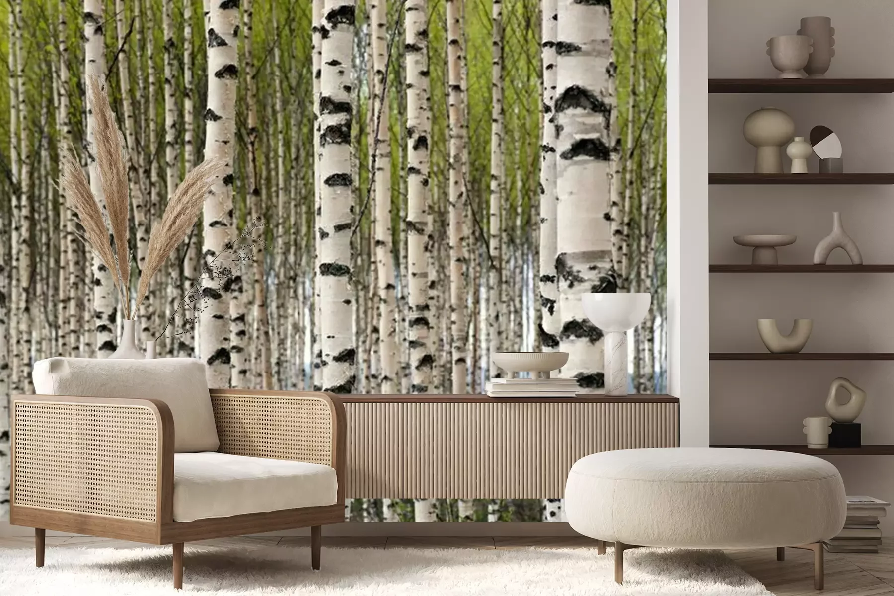 berk bomen in een zomer bosFotobehang