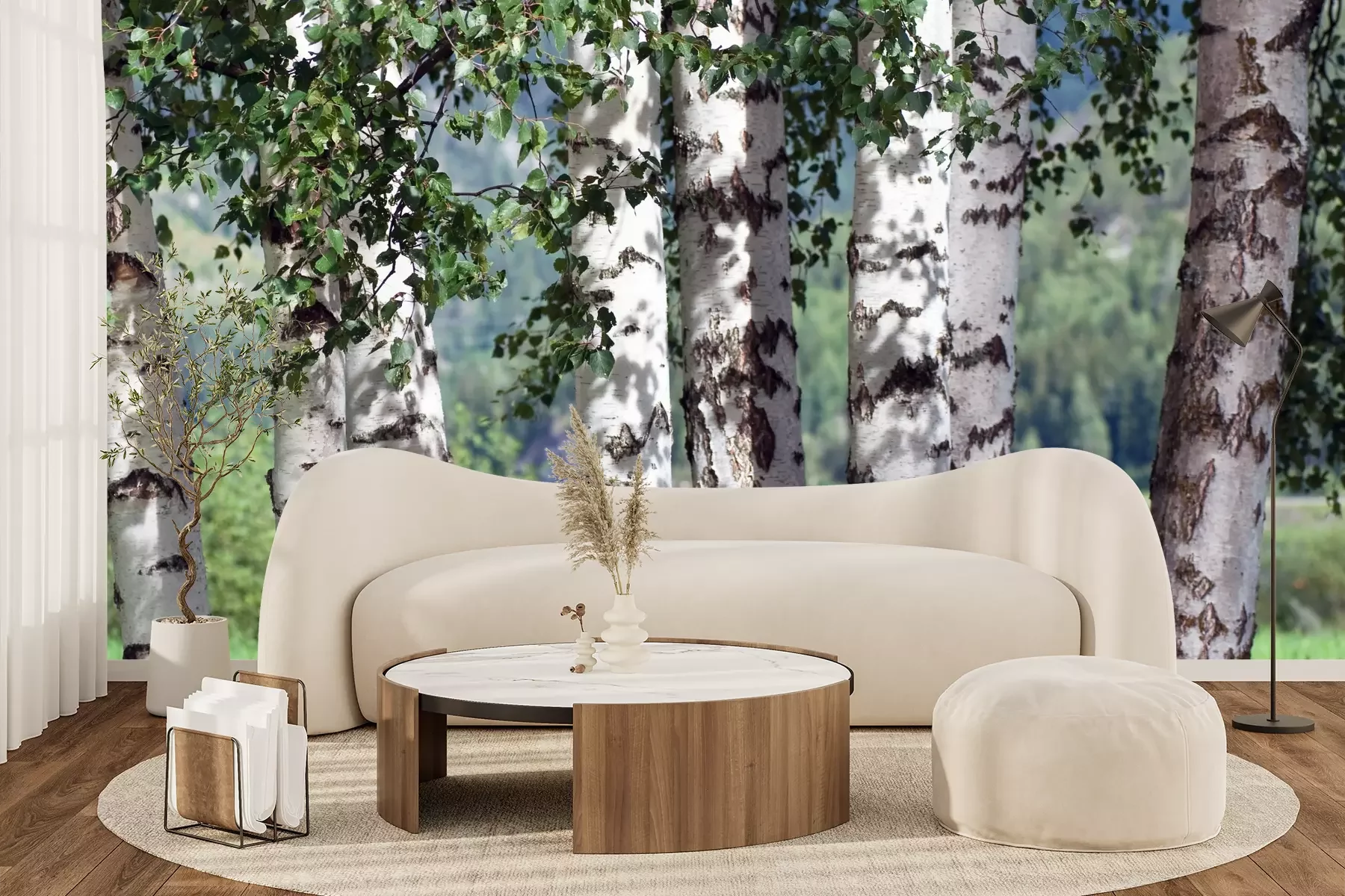 Het materiaal Premium+ is een gestructureerd vinyl op vlies met een gewicht van 255 g/m², dat kleine oneffenheden in de muur effectief camoufleert. De subtiele structuur van fijn zand geeft het oppervlak een exclusieve uitstraling, terwijl de halfmatte afwerking de diepte van de kleuren benadrukt. Het materiaal is dampdoorlatend, waardoor het ook in de keuken en badkamer kan worden gebruikt. De maximale breedte van één baan bedraagt 100 cm – bij grotere afmetingen wordt het fotobehang in meerdere gelijke banen verdeeld. De lijm wordt direct op de muur aangebracht en het behang wordt rand-aan-rand geplakt, wat zorgt voor een esthetisch resultaat zonder zichtbare naden. Het oppervlak kan gemakkelijk worden schoongemaakt door het voorzichtig af te nemen met een vochtige doek.