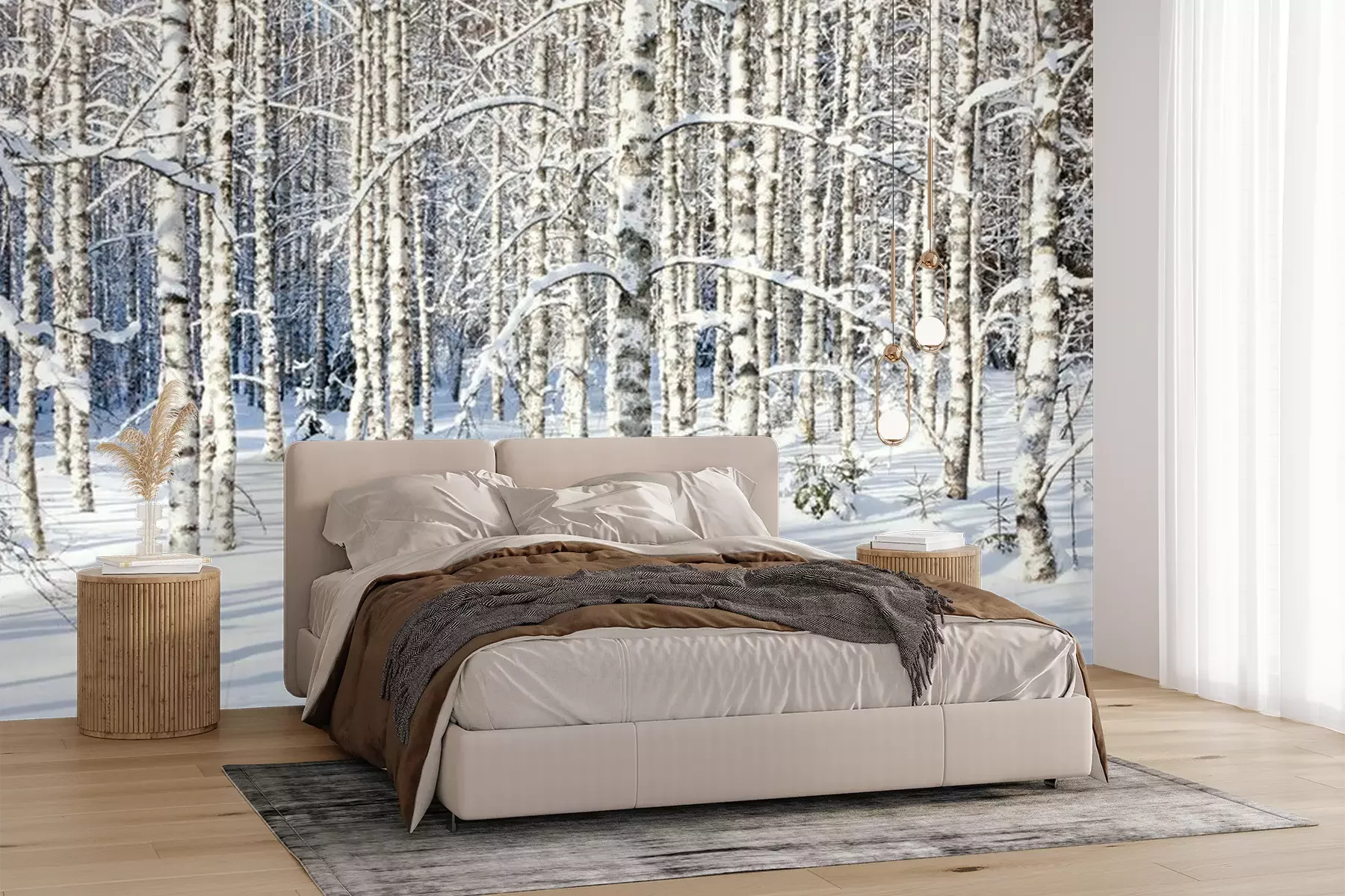 Het materiaal Premium+ is een gestructureerd vinyl op vlies met een gewicht van 255 g/m², dat kleine oneffenheden in de muur effectief camoufleert. De subtiele structuur van fijn zand geeft het oppervlak een exclusieve uitstraling, terwijl de halfmatte afwerking de diepte van de kleuren benadrukt. Het materiaal is dampdoorlatend, waardoor het ook in de keuken en badkamer kan worden gebruikt. De maximale breedte van één baan bedraagt 100 cm – bij grotere afmetingen wordt het fotobehang in meerdere gelijke banen verdeeld. De lijm wordt direct op de muur aangebracht en het behang wordt rand-aan-rand geplakt, wat zorgt voor een esthetisch resultaat zonder zichtbare naden. Het oppervlak kan gemakkelijk worden schoongemaakt door het voorzichtig af te nemen met een vochtige doek.