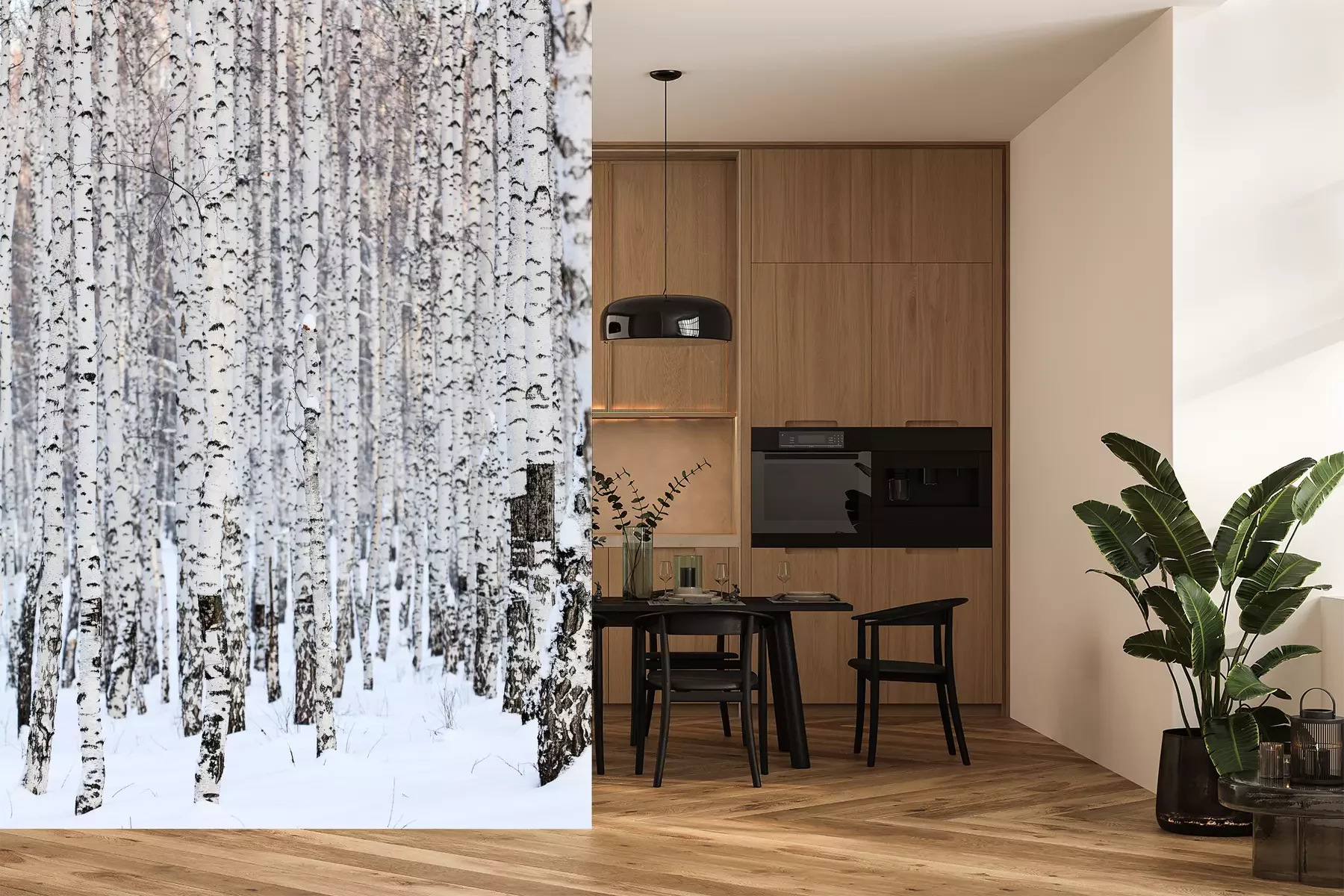 Het materiaal Premium+ is een gestructureerd vinyl op vlies met een gewicht van 255 g/m², dat kleine oneffenheden in de muur effectief camoufleert. De subtiele structuur van fijn zand geeft het oppervlak een exclusieve uitstraling, terwijl de halfmatte afwerking de diepte van de kleuren benadrukt. Het materiaal is dampdoorlatend, waardoor het ook in de keuken en badkamer kan worden gebruikt. De maximale breedte van één baan bedraagt 100 cm – bij grotere afmetingen wordt het fotobehang in meerdere gelijke banen verdeeld. De lijm wordt direct op de muur aangebracht en het behang wordt rand-aan-rand geplakt, wat zorgt voor een esthetisch resultaat zonder zichtbare naden. Het oppervlak kan gemakkelijk worden schoongemaakt door het voorzichtig af te nemen met een vochtige doek.