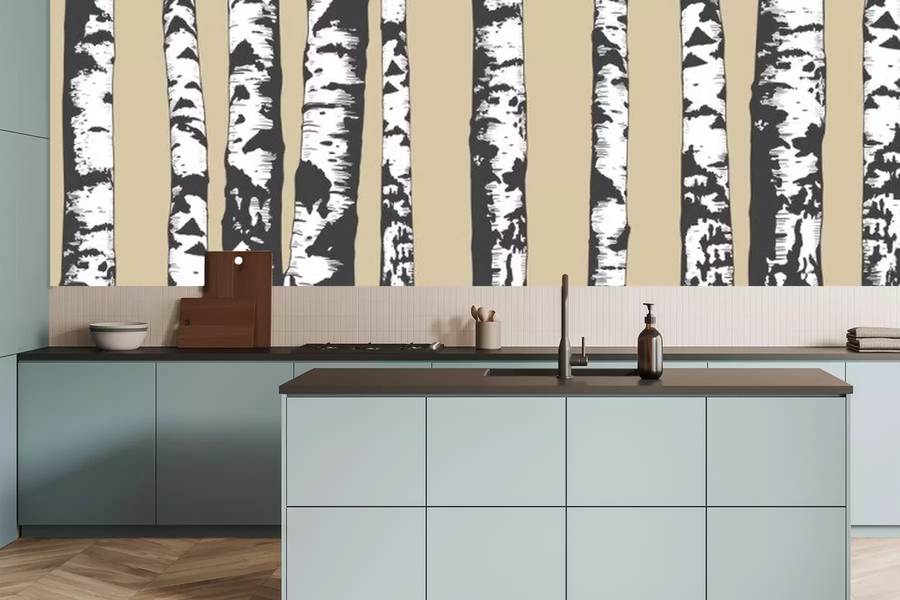 Fotobehang Berken op een beige achtergrond