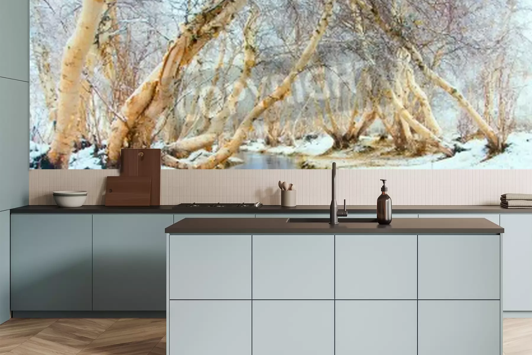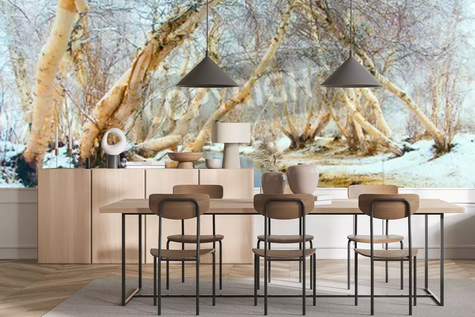 Fotobehang Berkenbomen hangend over een rivier