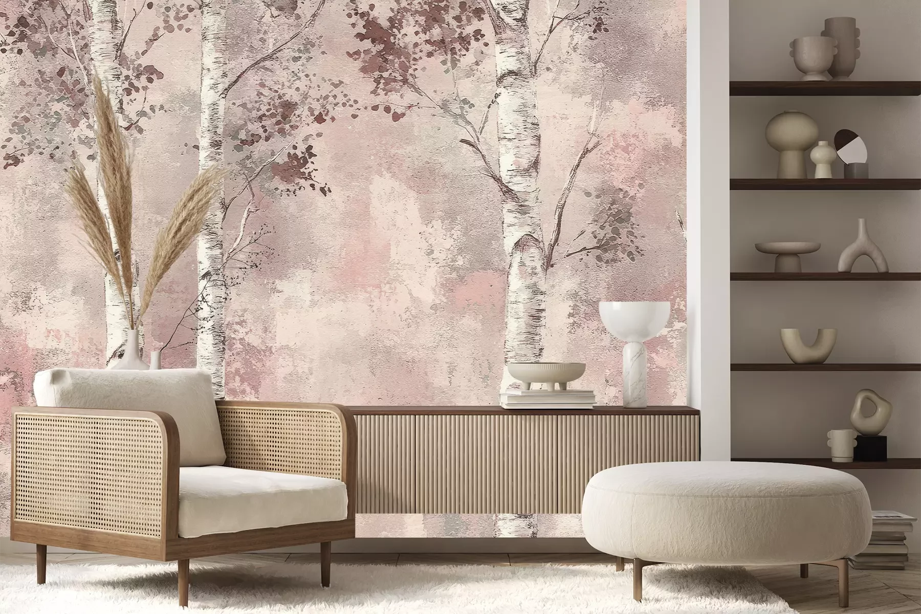 Het materiaal Premium+ is een gestructureerd vinyl op vlies met een gewicht van 255 g/m², dat kleine oneffenheden in de muur effectief camoufleert. De subtiele structuur van fijn zand geeft het oppervlak een exclusieve uitstraling, terwijl de halfmatte afwerking de diepte van de kleuren benadrukt. Het materiaal is dampdoorlatend, waardoor het ook in de keuken en badkamer kan worden gebruikt. De maximale breedte van één baan bedraagt 100 cm – bij grotere afmetingen wordt het fotobehang in meerdere gelijke banen verdeeld. De lijm wordt direct op de muur aangebracht en het behang wordt rand-aan-rand geplakt, wat zorgt voor een esthetisch resultaat zonder zichtbare naden. Het oppervlak kan gemakkelijk worden schoongemaakt door het voorzichtig af te nemen met een vochtige doek.