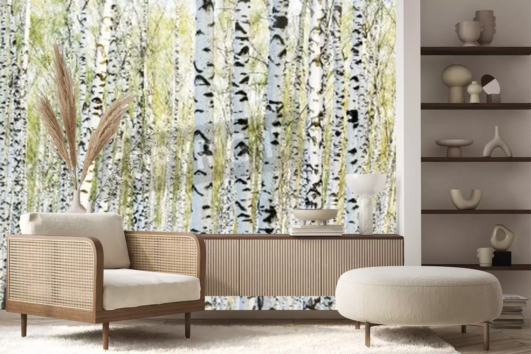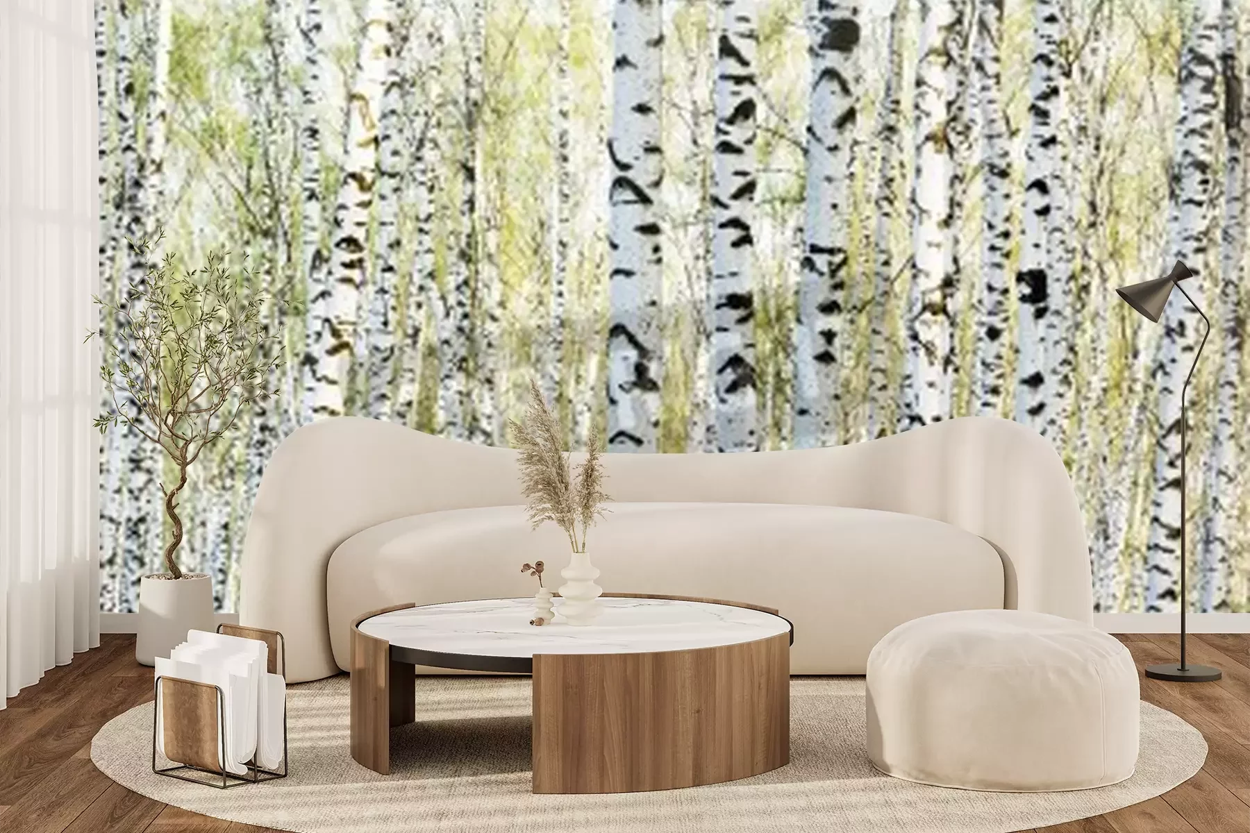 Fotobehang Berkenbos in het ochtendlicht