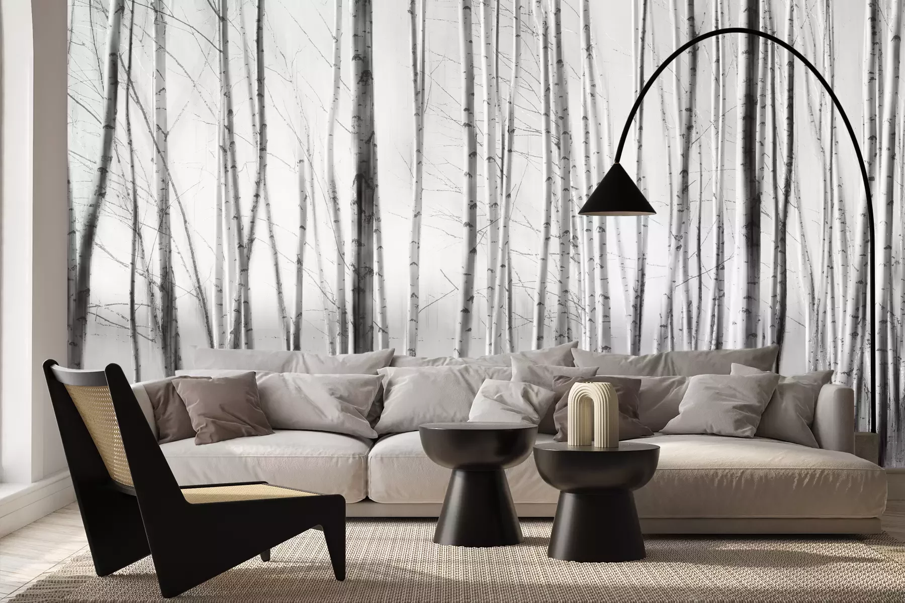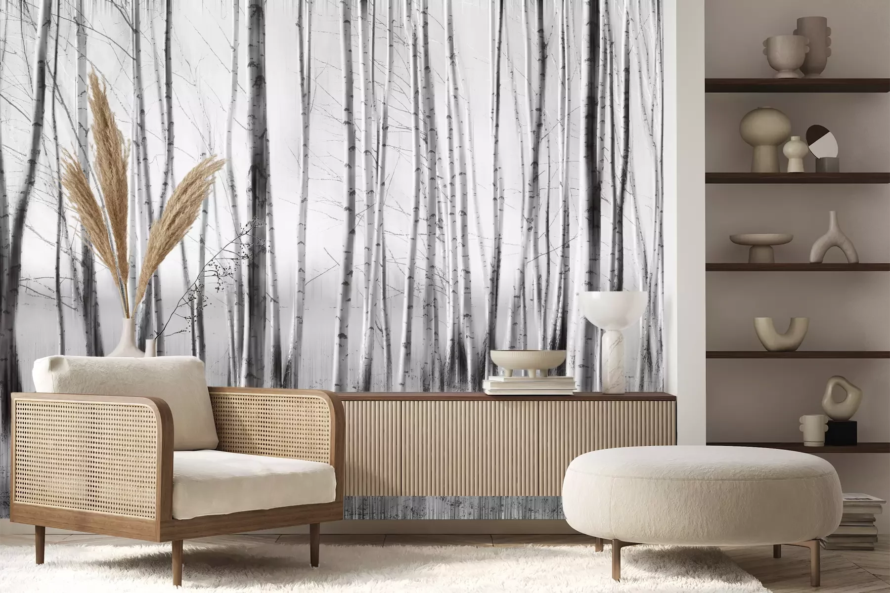 Het materiaal Premium+ is een gestructureerd vinyl op vlies met een gewicht van 255 g/m², dat kleine oneffenheden in de muur effectief camoufleert. De subtiele structuur van fijn zand geeft het oppervlak een exclusieve uitstraling, terwijl de halfmatte afwerking de diepte van de kleuren benadrukt. Het materiaal is dampdoorlatend, waardoor het ook in de keuken en badkamer kan worden gebruikt. De maximale breedte van één baan bedraagt 100 cm – bij grotere afmetingen wordt het fotobehang in meerdere gelijke banen verdeeld. De lijm wordt direct op de muur aangebracht en het behang wordt rand-aan-rand geplakt, wat zorgt voor een esthetisch resultaat zonder zichtbare naden. Het oppervlak kan gemakkelijk worden schoongemaakt door het voorzichtig af te nemen met een vochtige doek.