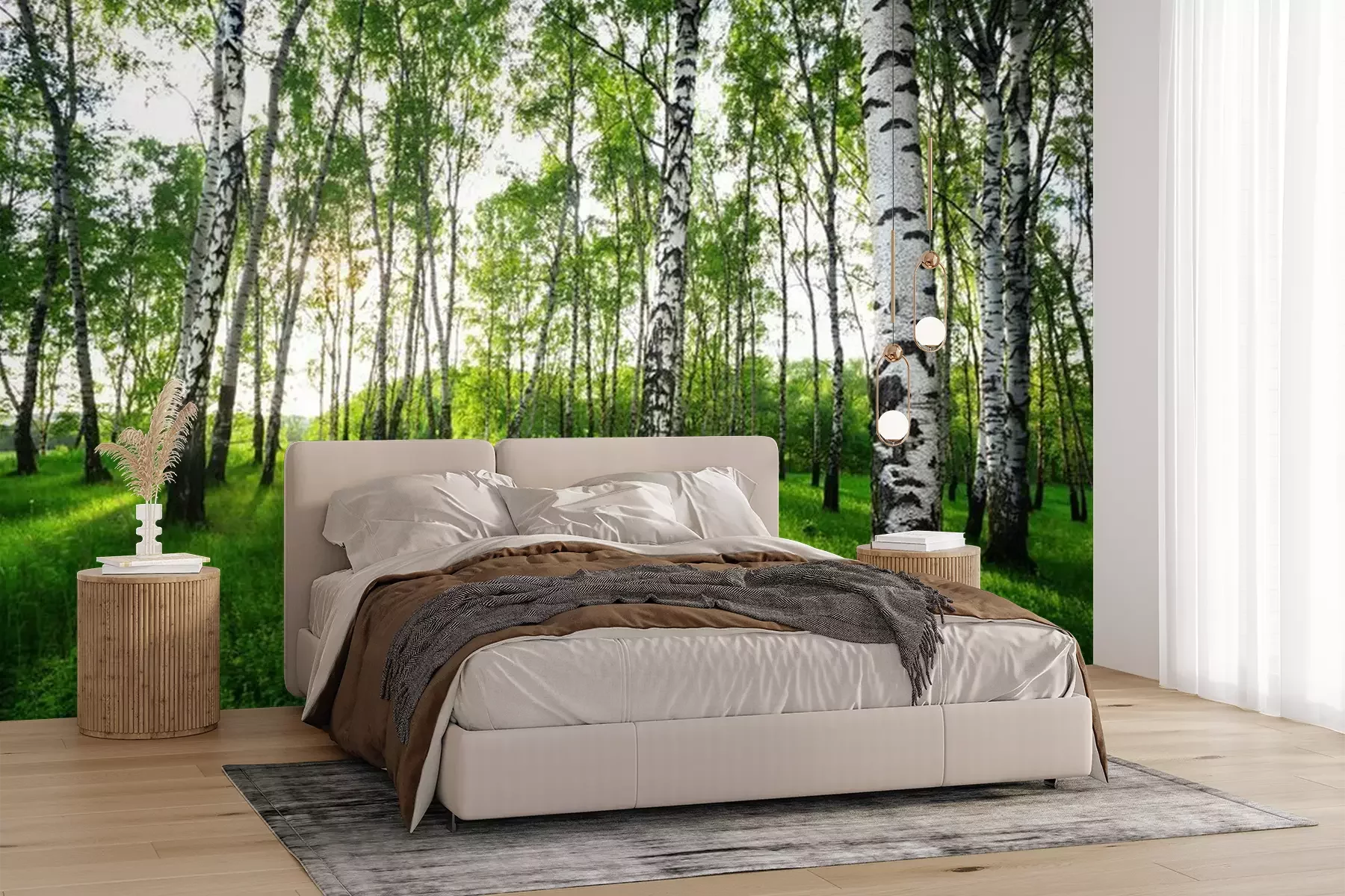Het materiaal Premium+ is een gestructureerd vinyl op vlies met een gewicht van 255 g/m², dat kleine oneffenheden in de muur effectief camoufleert. De subtiele structuur van fijn zand geeft het oppervlak een exclusieve uitstraling, terwijl de halfmatte afwerking de diepte van de kleuren benadrukt. Het materiaal is dampdoorlatend, waardoor het ook in de keuken en badkamer kan worden gebruikt. De maximale breedte van één baan bedraagt 100 cm – bij grotere afmetingen wordt het fotobehang in meerdere gelijke banen verdeeld. De lijm wordt direct op de muur aangebracht en het behang wordt rand-aan-rand geplakt, wat zorgt voor een esthetisch resultaat zonder zichtbare naden. Het oppervlak kan gemakkelijk worden schoongemaakt door het voorzichtig af te nemen met een vochtige doek.
