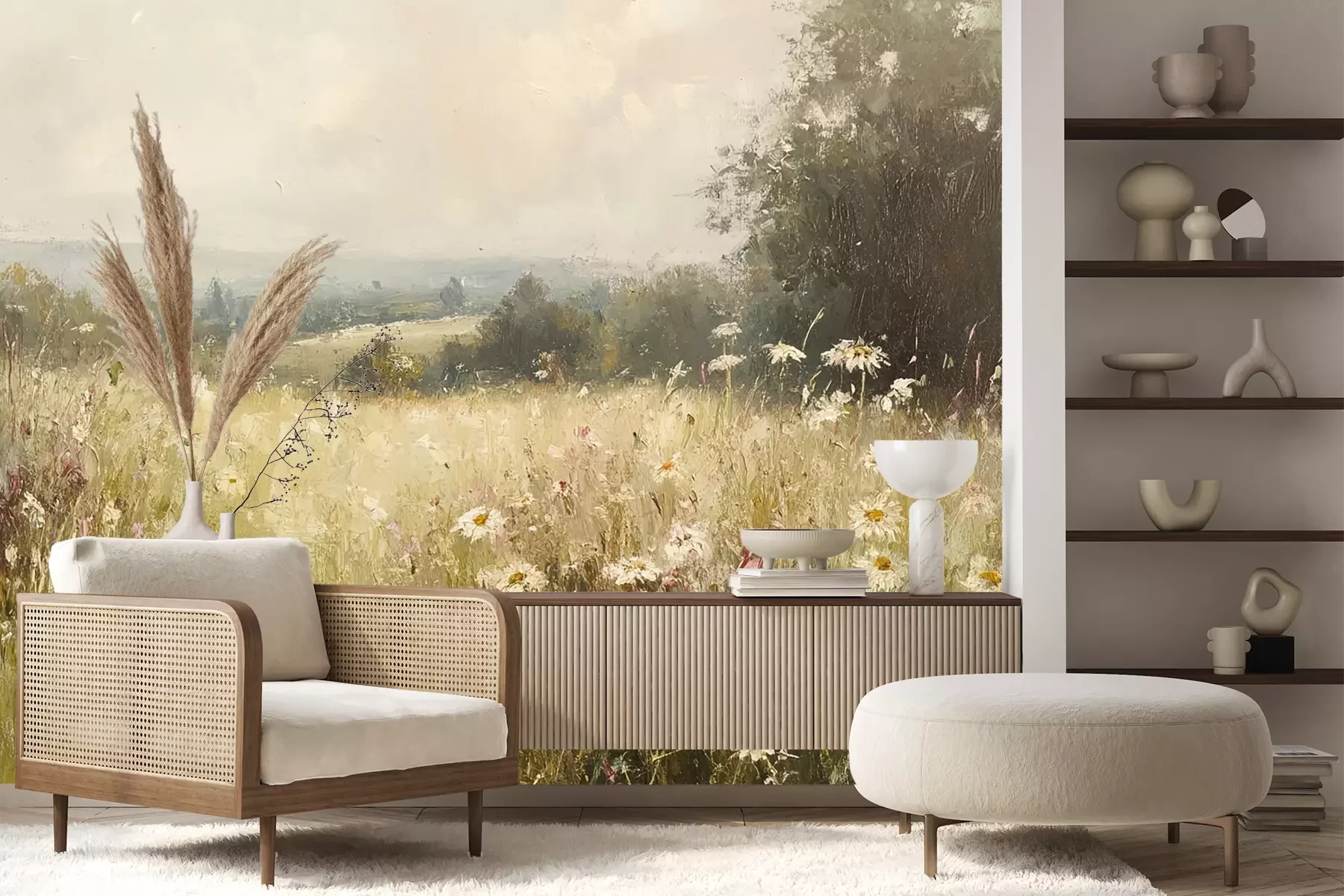 Het materiaal Premium+ is een gestructureerd vinyl op vlies met een gewicht van 255 g/m², dat kleine oneffenheden in de muur effectief camoufleert. De subtiele structuur van fijn zand geeft het oppervlak een exclusieve uitstraling, terwijl de halfmatte afwerking de diepte van de kleuren benadrukt. Het materiaal is dampdoorlatend, waardoor het ook in de keuken en badkamer kan worden gebruikt. De maximale breedte van één baan bedraagt 100 cm – bij grotere afmetingen wordt het fotobehang in meerdere gelijke banen verdeeld. De lijm wordt direct op de muur aangebracht en het behang wordt rand-aan-rand geplakt, wat zorgt voor een esthetisch resultaat zonder zichtbare naden. Het oppervlak kan gemakkelijk worden schoongemaakt door het voorzichtig af te nemen met een vochtige doek.