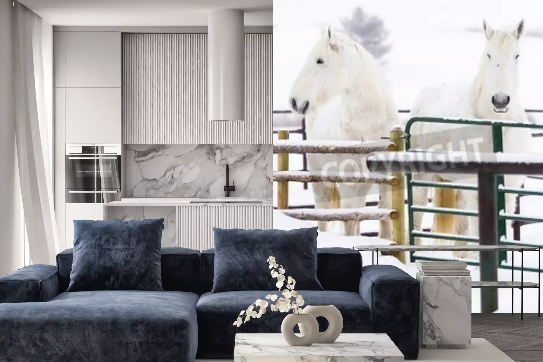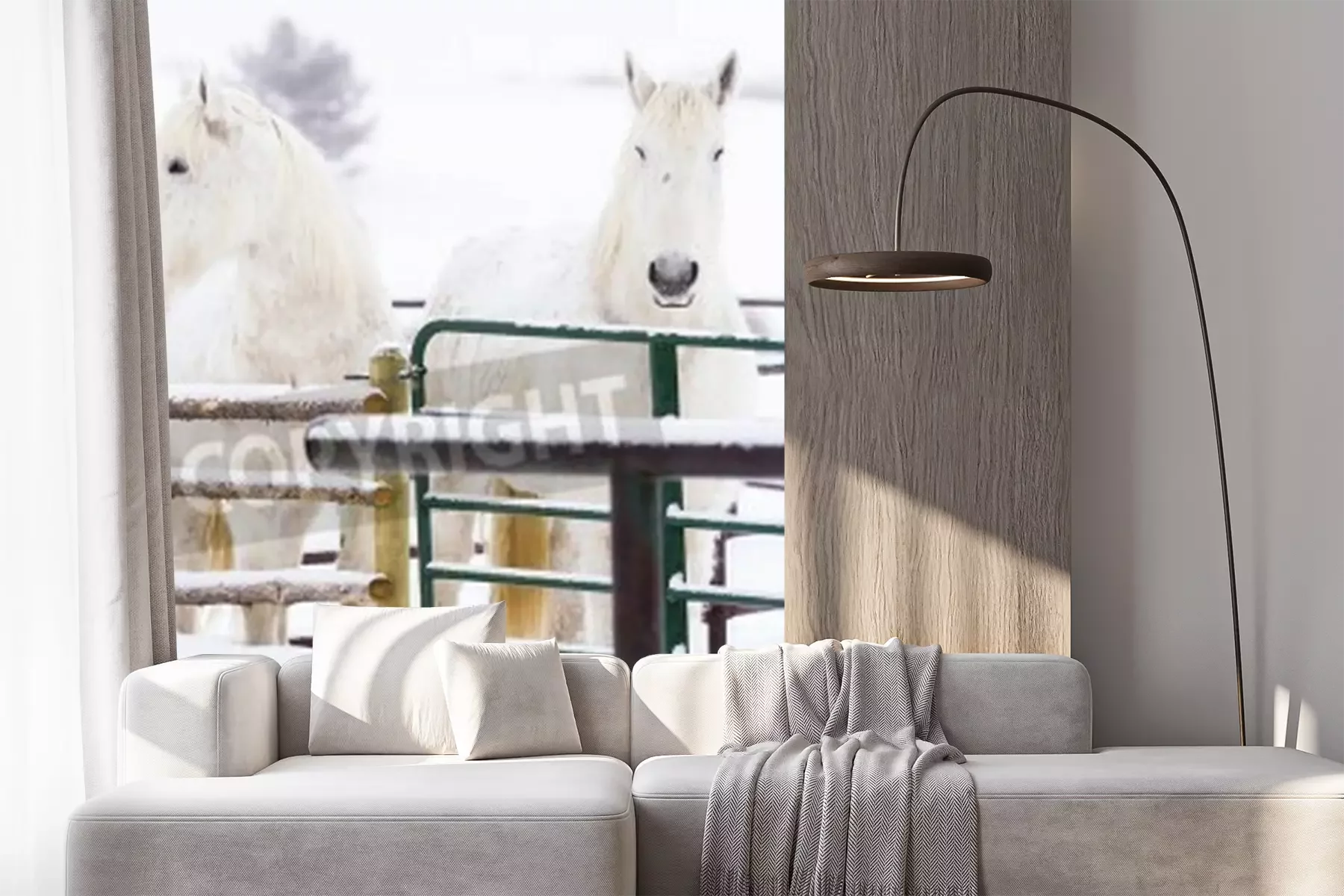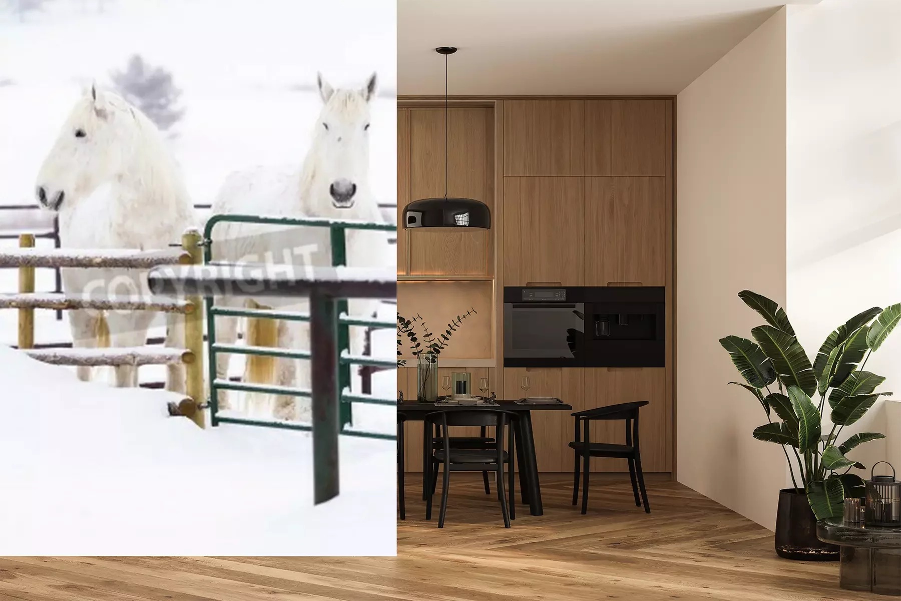 Fotobehang Besneeuwde paarden op een boerderij