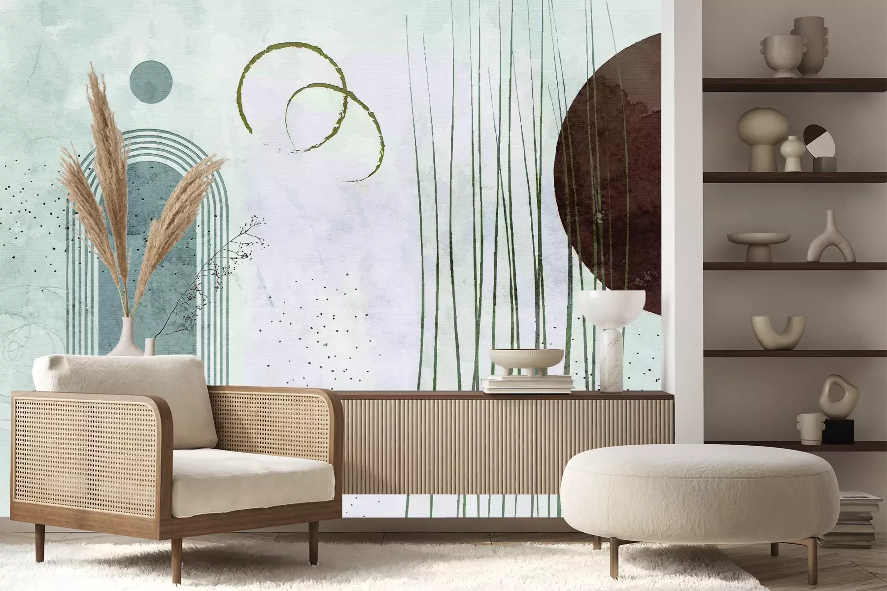 Het materiaal Premium+ is een gestructureerd vinyl op vlies met een gewicht van 255 g/m², dat kleine oneffenheden in de muur effectief camoufleert. De subtiele structuur van fijn zand geeft het oppervlak een exclusieve uitstraling, terwijl de halfmatte afwerking de diepte van de kleuren benadrukt. Het materiaal is dampdoorlatend, waardoor het ook in de keuken en badkamer kan worden gebruikt. De maximale breedte van één baan bedraagt 100 cm – bij grotere afmetingen wordt het fotobehang in meerdere gelijke banen verdeeld. De lijm wordt direct op de muur aangebracht en het behang wordt rand-aan-rand geplakt, wat zorgt voor een esthetisch resultaat zonder zichtbare naden. Het oppervlak kan gemakkelijk worden schoongemaakt door het voorzichtig af te nemen met een vochtige doek.