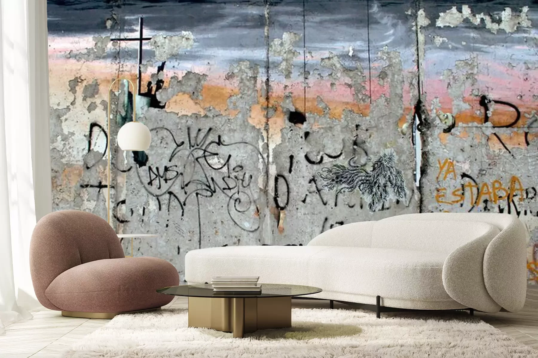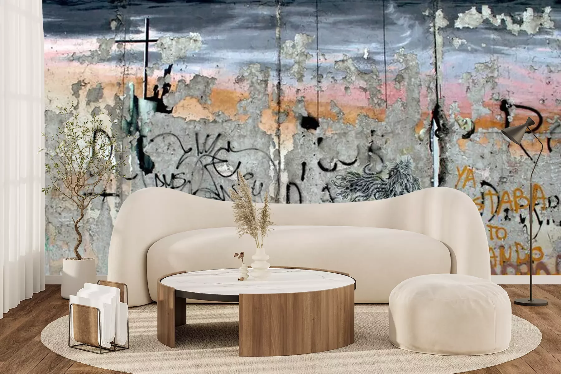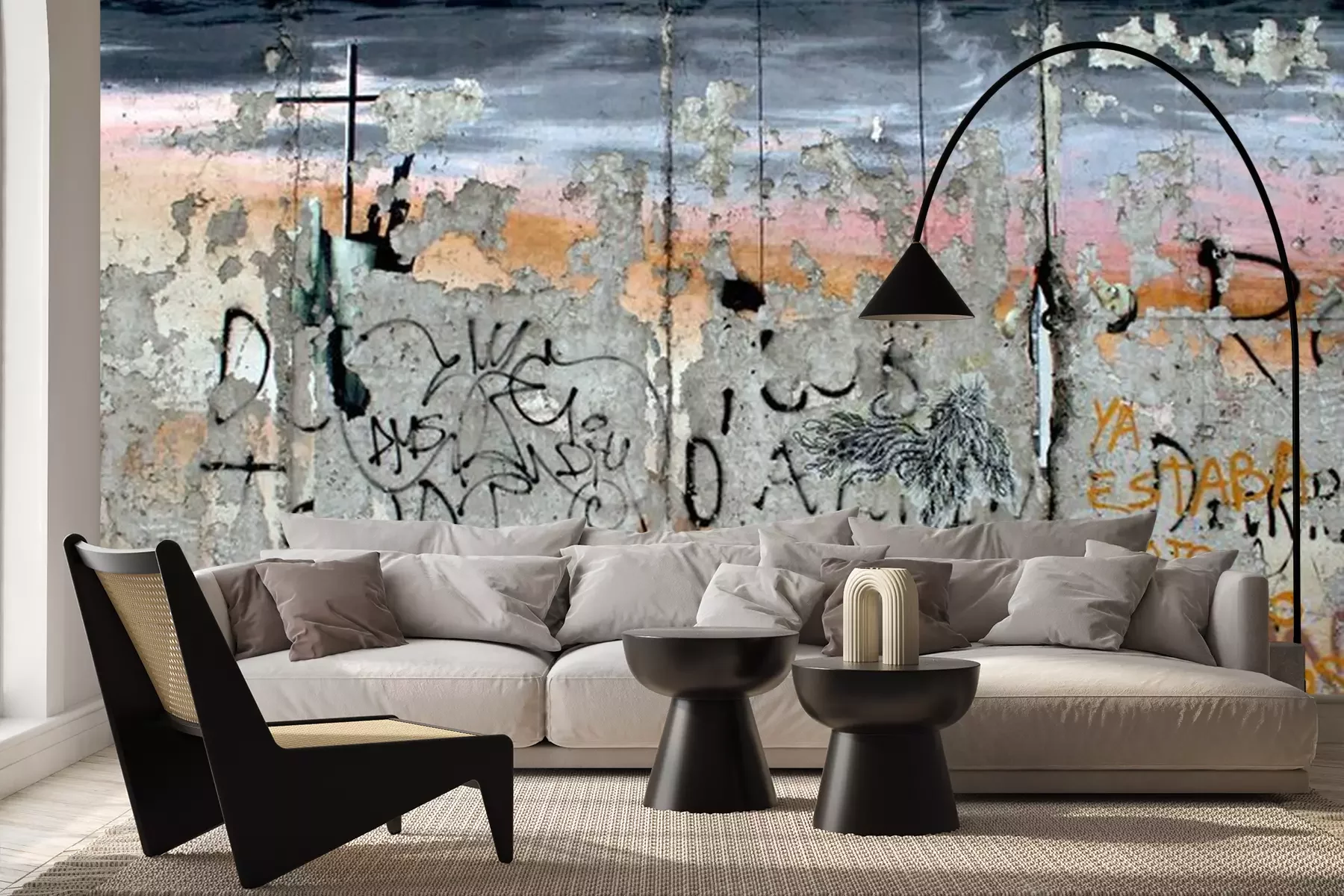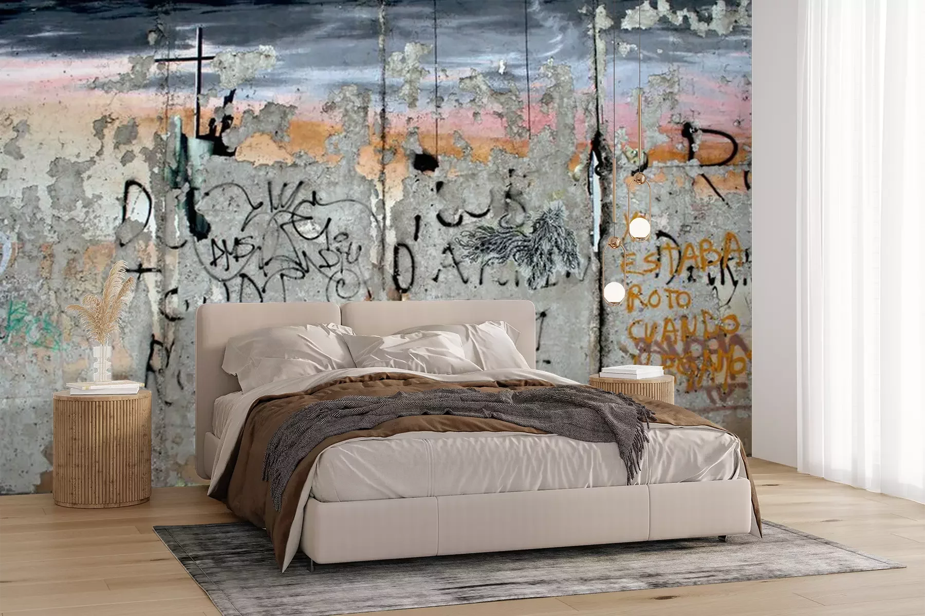 Fotobehang Betonnen muur met kleurrijke graffiti