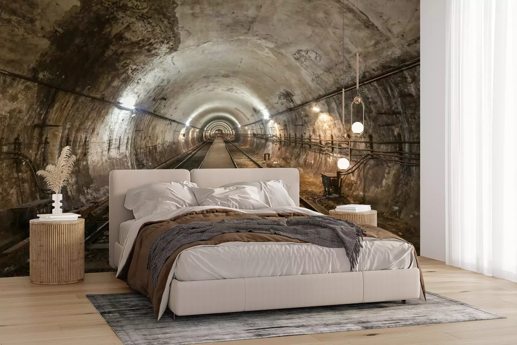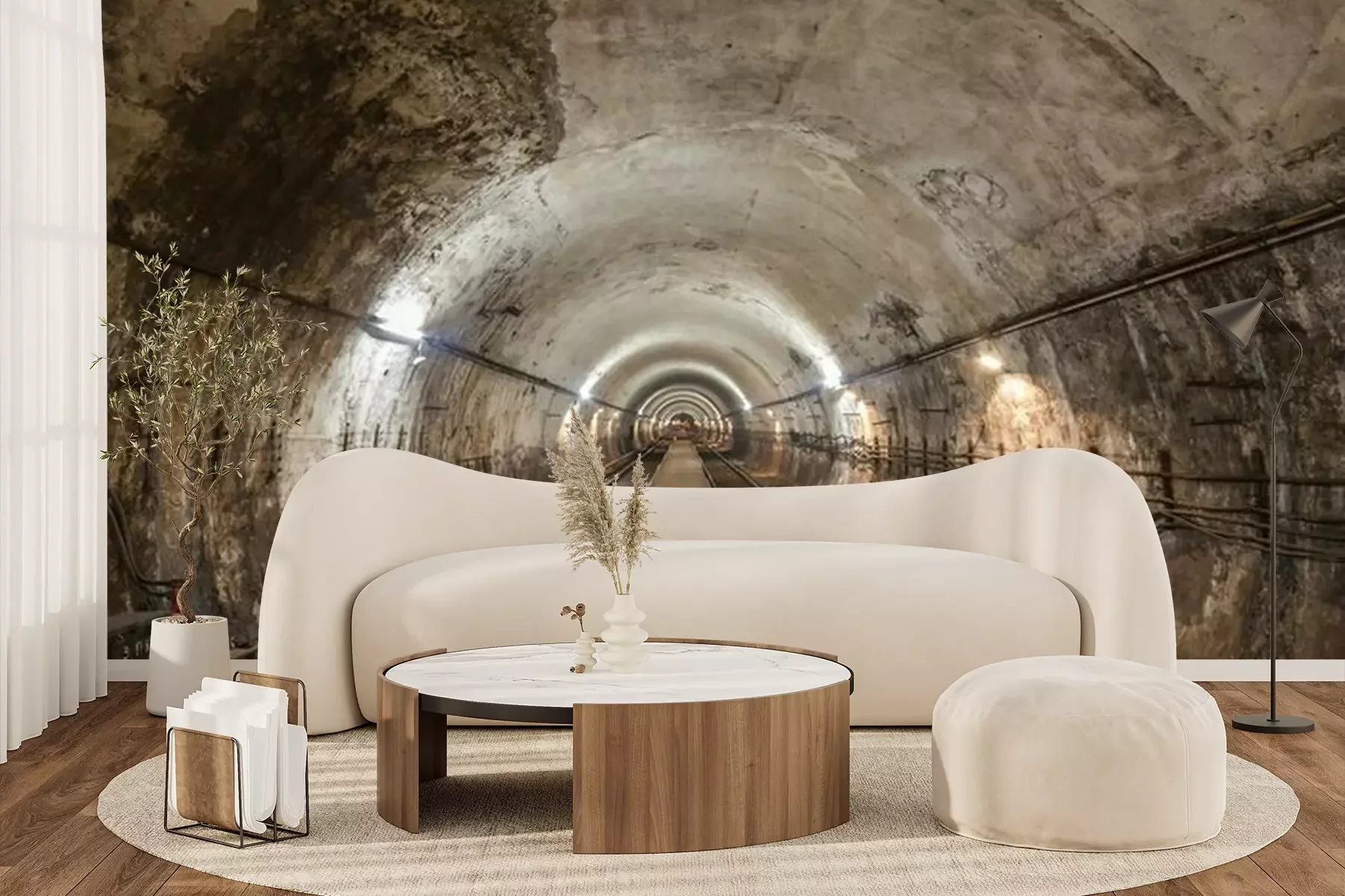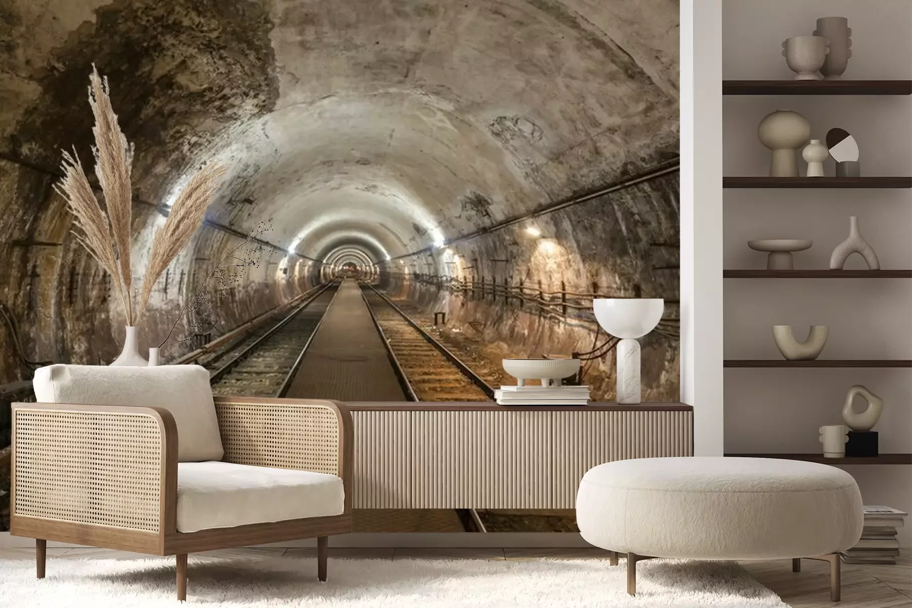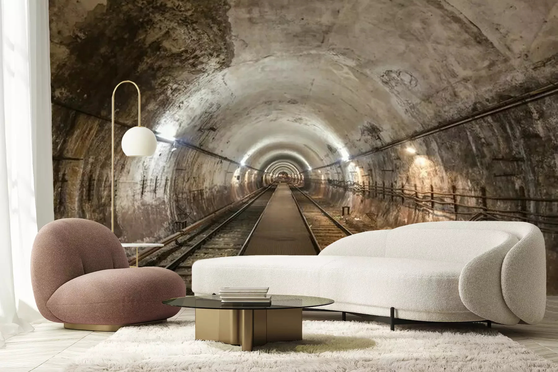 Fotobehang Betonnen tunnel en spoorweg