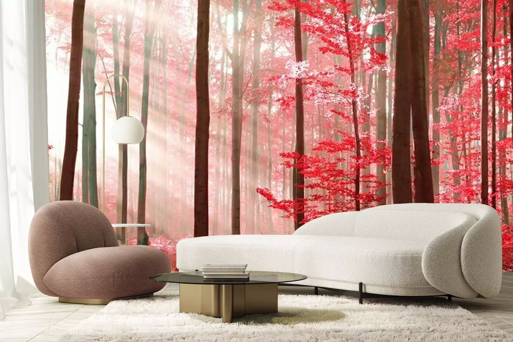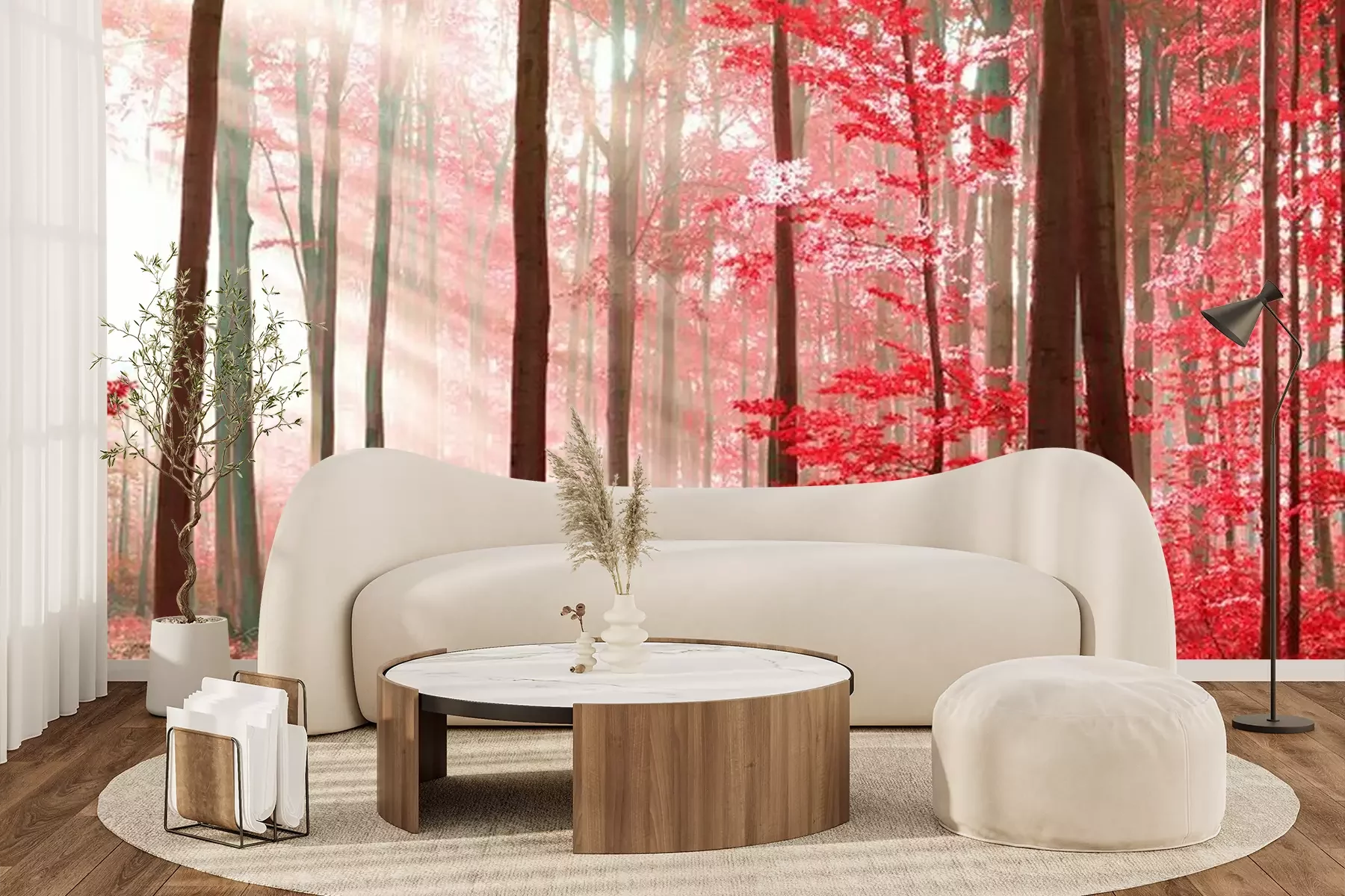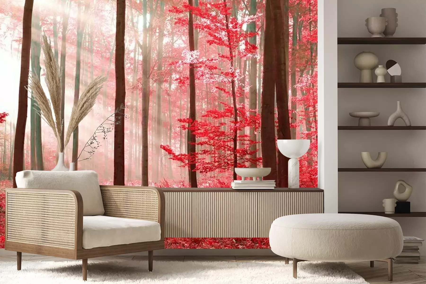 Fotobehang Betoverd bos in rood