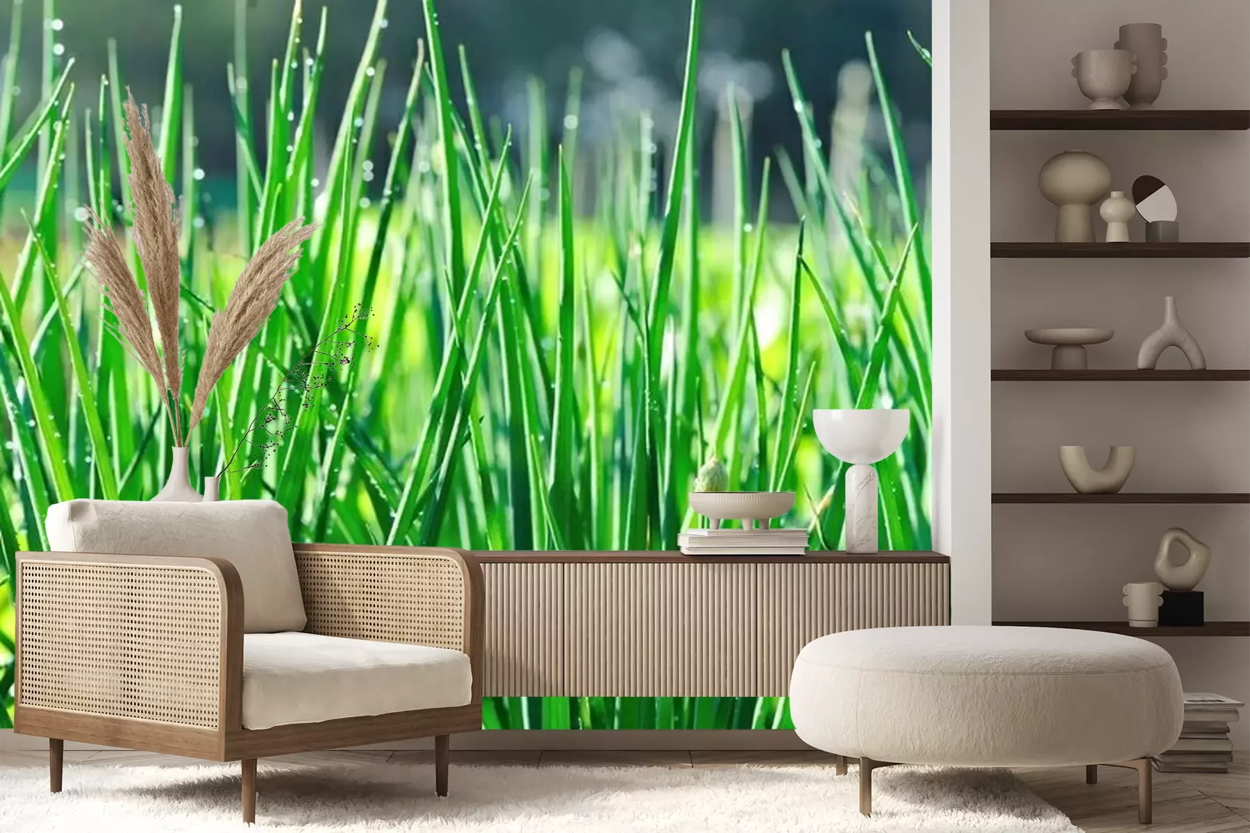 Het materiaal Premium+ is een gestructureerd vinyl op vlies met een gewicht van 255 g/m², dat kleine oneffenheden in de muur effectief camoufleert. De subtiele structuur van fijn zand geeft het oppervlak een exclusieve uitstraling, terwijl de halfmatte afwerking de diepte van de kleuren benadrukt. Het materiaal is dampdoorlatend, waardoor het ook in de keuken en badkamer kan worden gebruikt. De maximale breedte van één baan bedraagt 100 cm – bij grotere afmetingen wordt het fotobehang in meerdere gelijke banen verdeeld. De lijm wordt direct op de muur aangebracht en het behang wordt rand-aan-rand geplakt, wat zorgt voor een esthetisch resultaat zonder zichtbare naden. Het oppervlak kan gemakkelijk worden schoongemaakt door het voorzichtig af te nemen met een vochtige doek.