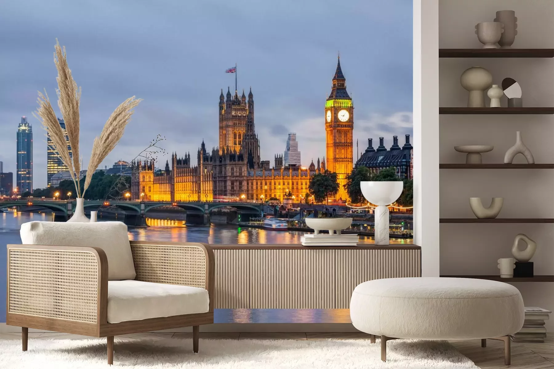 Het materiaal Premium+ is een gestructureerd vinyl op vlies met een gewicht van 255 g/m², dat kleine oneffenheden in de muur effectief camoufleert. De subtiele structuur van fijn zand geeft het oppervlak een exclusieve uitstraling, terwijl de halfmatte afwerking de diepte van de kleuren benadrukt. Het materiaal is dampdoorlatend, waardoor het ook in de keuken en badkamer kan worden gebruikt. De maximale breedte van één baan bedraagt 100 cm – bij grotere afmetingen wordt het fotobehang in meerdere gelijke banen verdeeld. De lijm wordt direct op de muur aangebracht en het behang wordt rand-aan-rand geplakt, wat zorgt voor een esthetisch resultaat zonder zichtbare naden. Het oppervlak kan gemakkelijk worden schoongemaakt door het voorzichtig af te nemen met een vochtige doek.