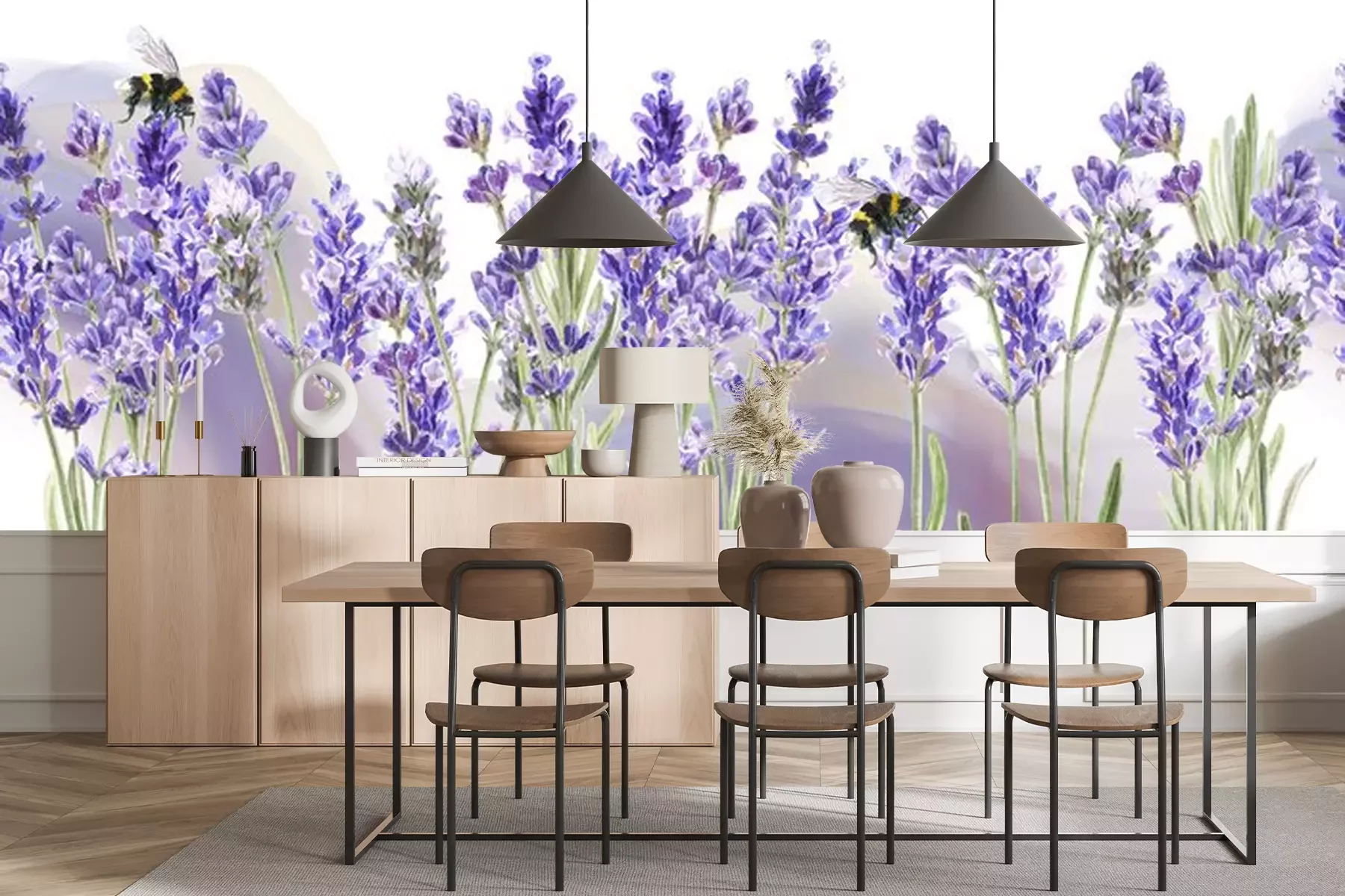 Fotobehang Bijen op lavendelbloemen