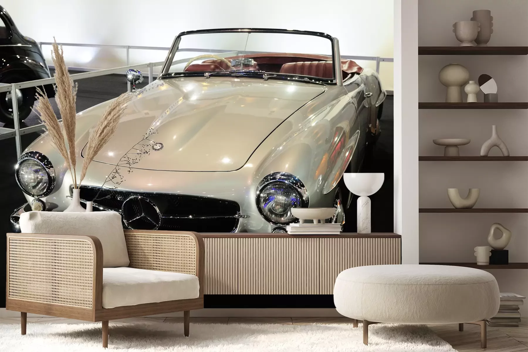 Het materiaal Premium+ is een gestructureerd vinyl op vlies met een gewicht van 255 g/m², dat kleine oneffenheden in de muur effectief camoufleert. De subtiele structuur van fijn zand geeft het oppervlak een exclusieve uitstraling, terwijl de halfmatte afwerking de diepte van de kleuren benadrukt. Het materiaal is dampdoorlatend, waardoor het ook in de keuken en badkamer kan worden gebruikt. De maximale breedte van één baan bedraagt 100 cm – bij grotere afmetingen wordt het fotobehang in meerdere gelijke banen verdeeld. De lijm wordt direct op de muur aangebracht en het behang wordt rand-aan-rand geplakt, wat zorgt voor een esthetisch resultaat zonder zichtbare naden. Het oppervlak kan gemakkelijk worden schoongemaakt door het voorzichtig af te nemen met een vochtige doek.