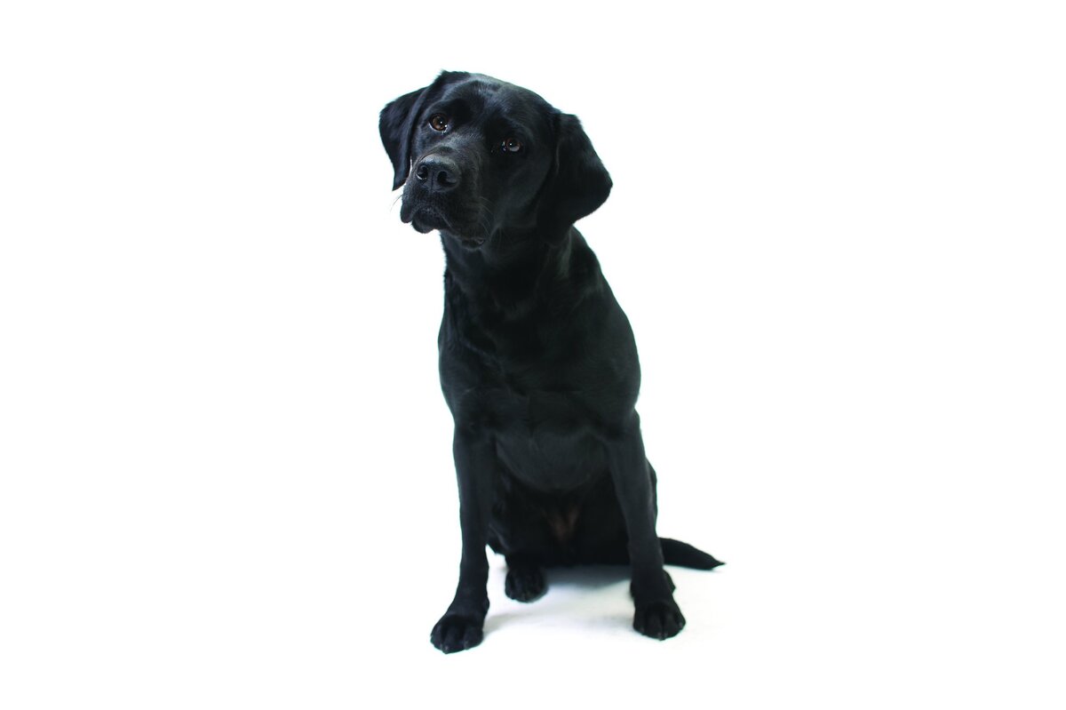 Black labrador on a white background