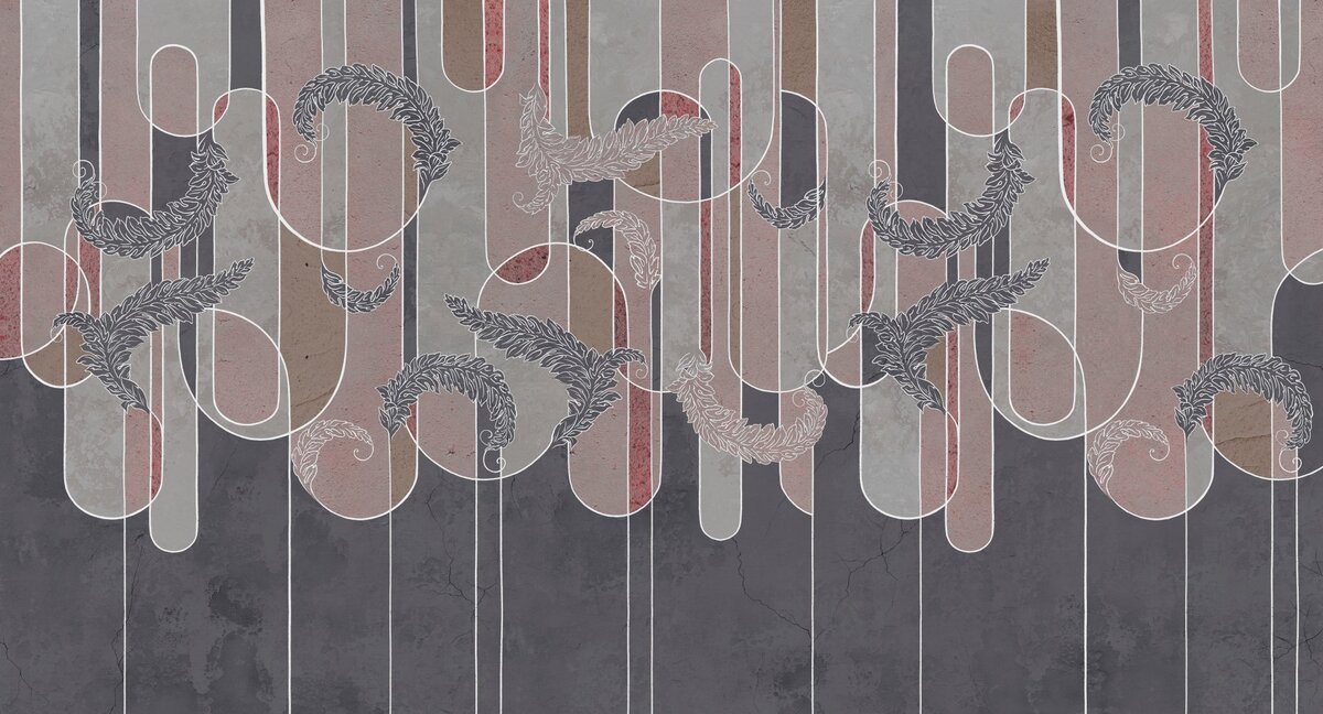 Fotobehang: Bladeren en geometrische vormen op een betonnen achtergrond