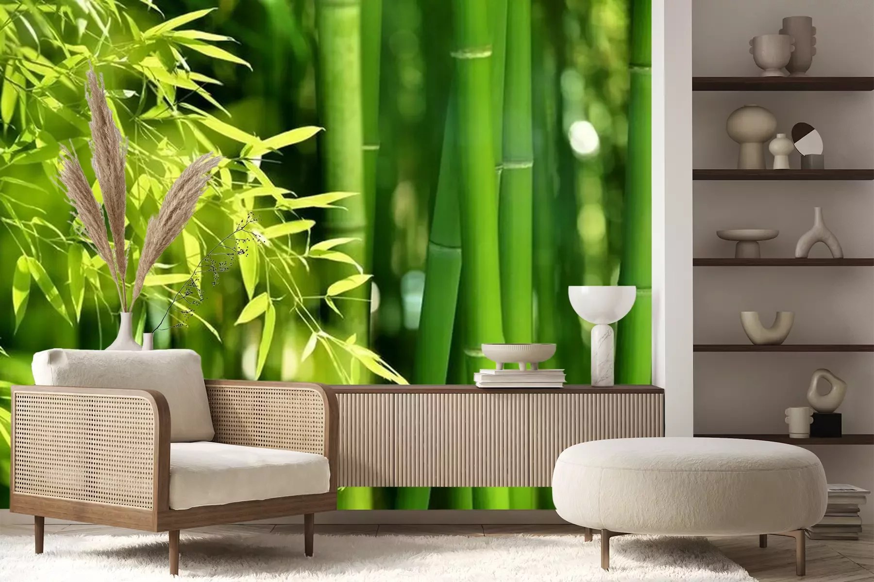 Het materiaal Premium+ is een gestructureerd vinyl op vlies met een gewicht van 255 g/m², dat kleine oneffenheden in de muur effectief camoufleert. De subtiele structuur van fijn zand geeft het oppervlak een exclusieve uitstraling, terwijl de halfmatte afwerking de diepte van de kleuren benadrukt. Het materiaal is dampdoorlatend, waardoor het ook in de keuken en badkamer kan worden gebruikt. De maximale breedte van één baan bedraagt 100 cm – bij grotere afmetingen wordt het fotobehang in meerdere gelijke banen verdeeld. De lijm wordt direct op de muur aangebracht en het behang wordt rand-aan-rand geplakt, wat zorgt voor een esthetisch resultaat zonder zichtbare naden. Het oppervlak kan gemakkelijk worden schoongemaakt door het voorzichtig af te nemen met een vochtige doek.