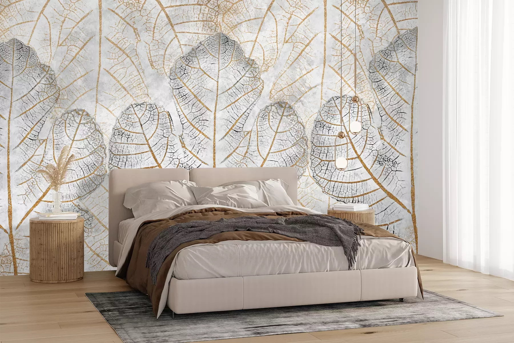Het materiaal Premium+ is een gestructureerd vinyl op vlies met een gewicht van 255 g/m², dat kleine oneffenheden in de muur effectief camoufleert. De subtiele structuur van fijn zand geeft het oppervlak een exclusieve uitstraling, terwijl de halfmatte afwerking de diepte van de kleuren benadrukt. Het materiaal is dampdoorlatend, waardoor het ook in de keuken en badkamer kan worden gebruikt. De maximale breedte van één baan bedraagt 100 cm – bij grotere afmetingen wordt het fotobehang in meerdere gelijke banen verdeeld. De lijm wordt direct op de muur aangebracht en het behang wordt rand-aan-rand geplakt, wat zorgt voor een esthetisch resultaat zonder zichtbare naden. Het oppervlak kan gemakkelijk worden schoongemaakt door het voorzichtig af te nemen met een vochtige doek.
