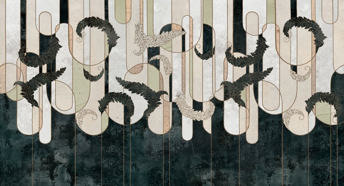 Fotobehang: Bladeren op een geometrische textuurachtergrond