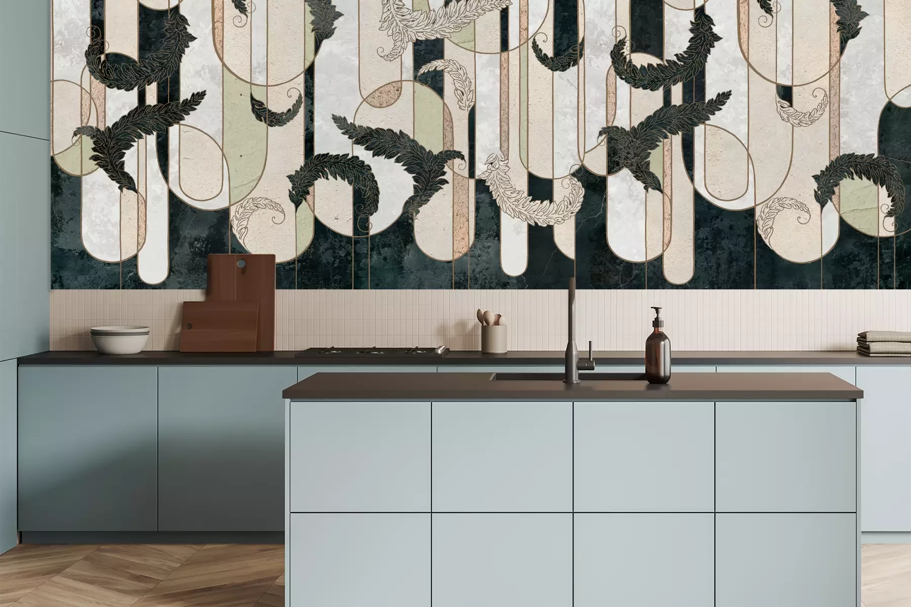 Het materiaal Premium is een glad vinyl op vlies, dat bestand is tegen uitrekken en vervorming. Het is dampdoorlatend – de muren kunnen vrij ademen – waardoor het geschikt is voor gebruik in de keuken en badkamer. Bij vervuiling kan het materiaal worden afgenomen met een vochtige doek. De maximale breedte van één baan bedraagt 95 of 105 cm, afhankelijk van de beschikbaarheid. Montage vindt plaats met de rand-aan-rand methode, wat een esthetisch resultaat zonder zichtbare naden oplevert. Omdat de lijm rechtstreeks op de muur wordt aangebracht, verloopt de installatie van het fotobehang snel en eenvoudig.