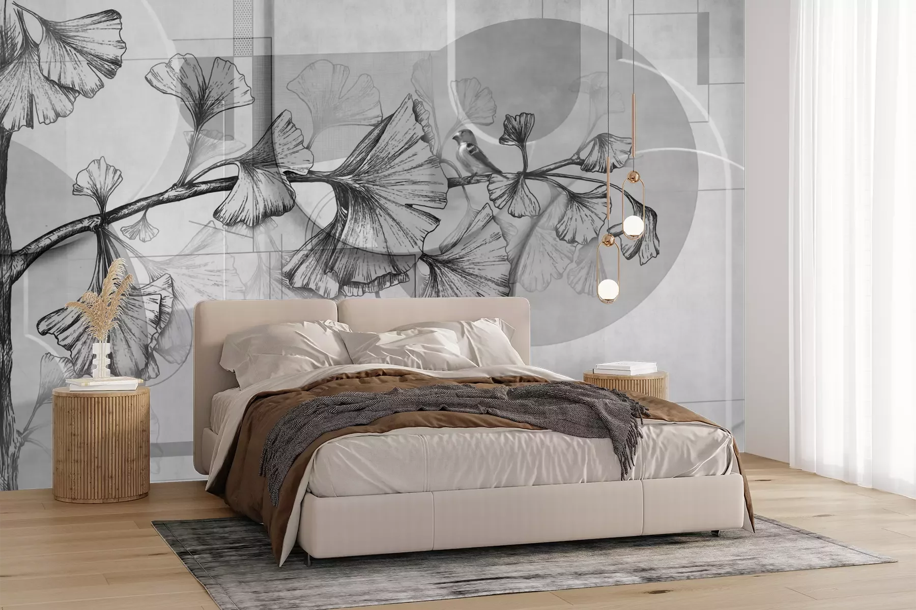 Het materiaal Premium+ is een gestructureerd vinyl op vlies met een gewicht van 255 g/m², dat kleine oneffenheden in de muur effectief camoufleert. De subtiele structuur van fijn zand geeft het oppervlak een exclusieve uitstraling, terwijl de halfmatte afwerking de diepte van de kleuren benadrukt. Het materiaal is dampdoorlatend, waardoor het ook in de keuken en badkamer kan worden gebruikt. De maximale breedte van één baan bedraagt 100 cm – bij grotere afmetingen wordt het fotobehang in meerdere gelijke banen verdeeld. De lijm wordt direct op de muur aangebracht en het behang wordt rand-aan-rand geplakt, wat zorgt voor een esthetisch resultaat zonder zichtbare naden. Het oppervlak kan gemakkelijk worden schoongemaakt door het voorzichtig af te nemen met een vochtige doek.