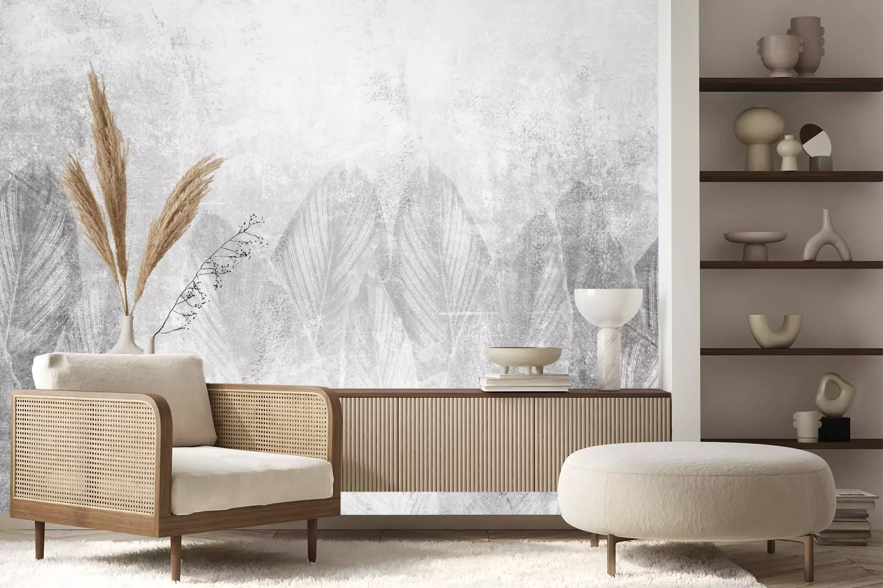 Het materiaal Premium+ is een gestructureerd vinyl op vlies met een gewicht van 255 g/m², dat kleine oneffenheden in de muur effectief camoufleert. De subtiele structuur van fijn zand geeft het oppervlak een exclusieve uitstraling, terwijl de halfmatte afwerking de diepte van de kleuren benadrukt. Het materiaal is dampdoorlatend, waardoor het ook in de keuken en badkamer kan worden gebruikt. De maximale breedte van één baan bedraagt 100 cm – bij grotere afmetingen wordt het fotobehang in meerdere gelijke banen verdeeld. De lijm wordt direct op de muur aangebracht en het behang wordt rand-aan-rand geplakt, wat zorgt voor een esthetisch resultaat zonder zichtbare naden. Het oppervlak kan gemakkelijk worden schoongemaakt door het voorzichtig af te nemen met een vochtige doek.