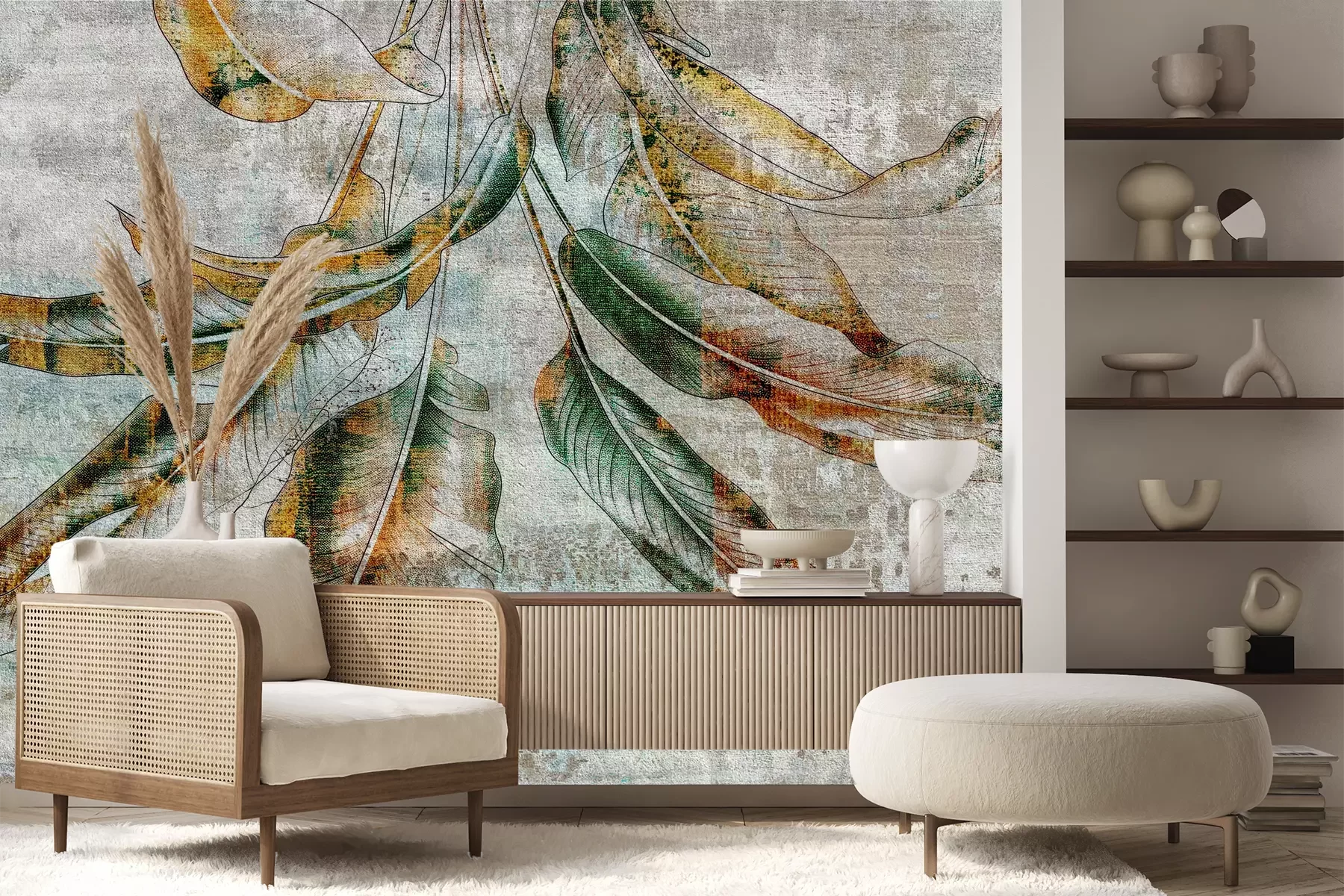 Het materiaal Premium+ is een gestructureerd vinyl op vlies met een gewicht van 255 g/m², dat kleine oneffenheden in de muur effectief camoufleert. De subtiele structuur van fijn zand geeft het oppervlak een exclusieve uitstraling, terwijl de halfmatte afwerking de diepte van de kleuren benadrukt. Het materiaal is dampdoorlatend, waardoor het ook in de keuken en badkamer kan worden gebruikt. De maximale breedte van één baan bedraagt 100 cm – bij grotere afmetingen wordt het fotobehang in meerdere gelijke banen verdeeld. De lijm wordt direct op de muur aangebracht en het behang wordt rand-aan-rand geplakt, wat zorgt voor een esthetisch resultaat zonder zichtbare naden. Het oppervlak kan gemakkelijk worden schoongemaakt door het voorzichtig af te nemen met een vochtige doek.