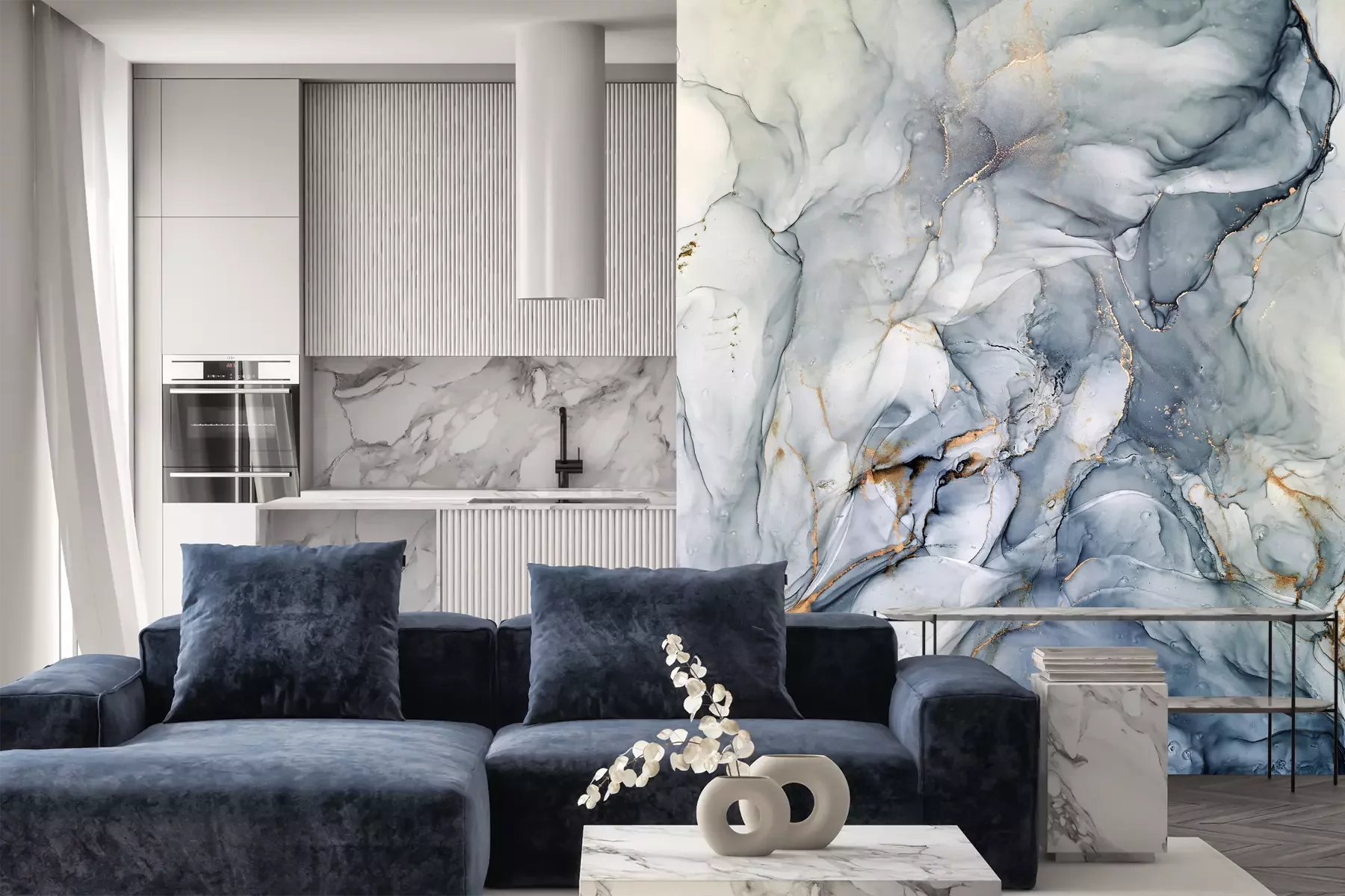 Het materiaal Premium+ is een gestructureerd vinyl op vlies met een gewicht van 255 g/m², dat kleine oneffenheden in de muur effectief camoufleert. De subtiele structuur van fijn zand geeft het oppervlak een exclusieve uitstraling, terwijl de halfmatte afwerking de diepte van de kleuren benadrukt. Het materiaal is dampdoorlatend, waardoor het ook in de keuken en badkamer kan worden gebruikt. De maximale breedte van één baan bedraagt 100 cm – bij grotere afmetingen wordt het fotobehang in meerdere gelijke banen verdeeld. De lijm wordt direct op de muur aangebracht en het behang wordt rand-aan-rand geplakt, wat zorgt voor een esthetisch resultaat zonder zichtbare naden. Het oppervlak kan gemakkelijk worden schoongemaakt door het voorzichtig af te nemen met een vochtige doek.