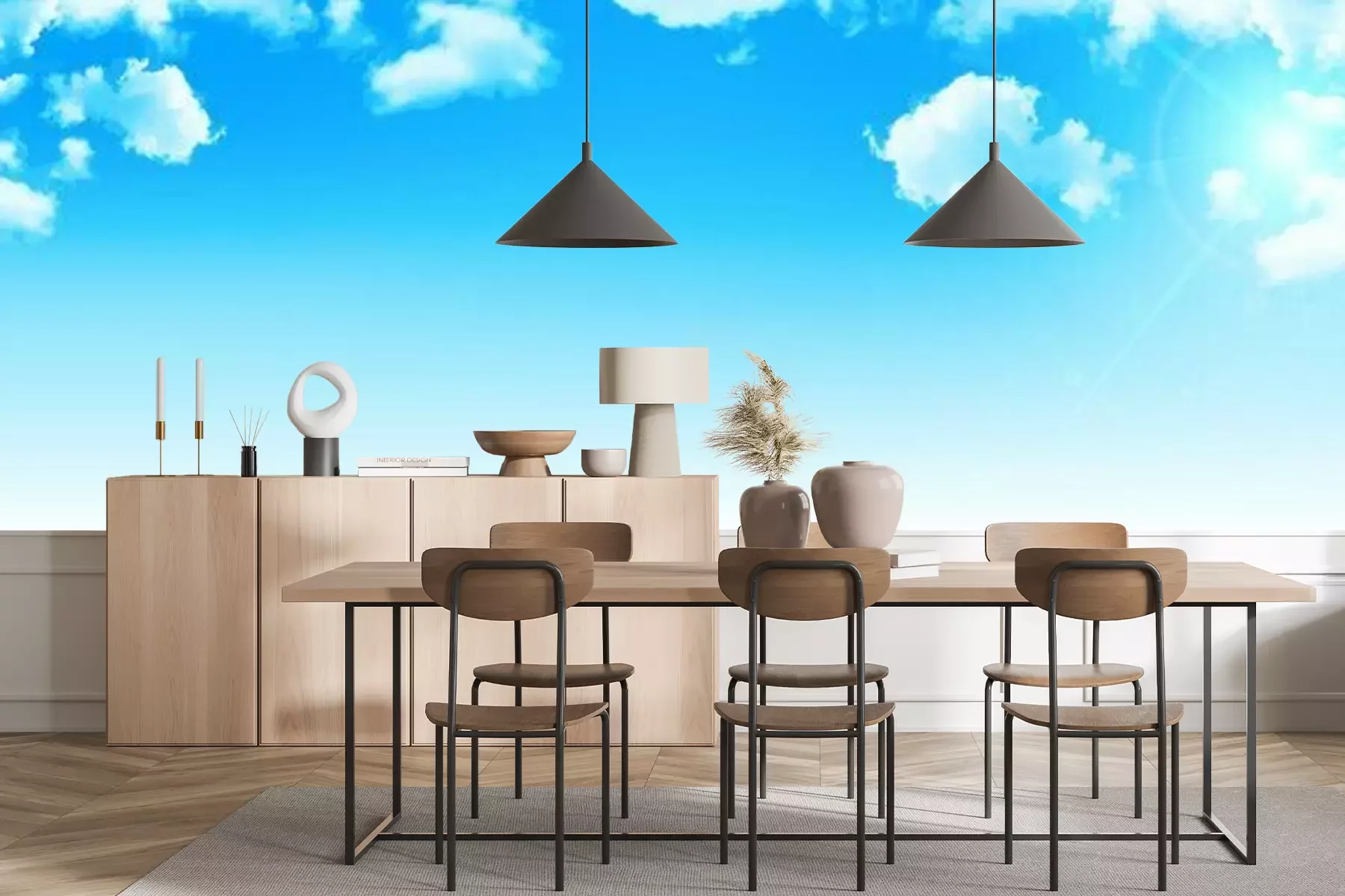 Het materiaal Premium+ is een gestructureerd vinyl op vlies met een gewicht van 255 g/m², dat kleine oneffenheden in de muur effectief camoufleert. De subtiele structuur van fijn zand geeft het oppervlak een exclusieve uitstraling, terwijl de halfmatte afwerking de diepte van de kleuren benadrukt. Het materiaal is dampdoorlatend, waardoor het ook in de keuken en badkamer kan worden gebruikt. De maximale breedte van één baan bedraagt 100 cm – bij grotere afmetingen wordt het fotobehang in meerdere gelijke banen verdeeld. De lijm wordt direct op de muur aangebracht en het behang wordt rand-aan-rand geplakt, wat zorgt voor een esthetisch resultaat zonder zichtbare naden. Het oppervlak kan gemakkelijk worden schoongemaakt door het voorzichtig af te nemen met een vochtige doek.