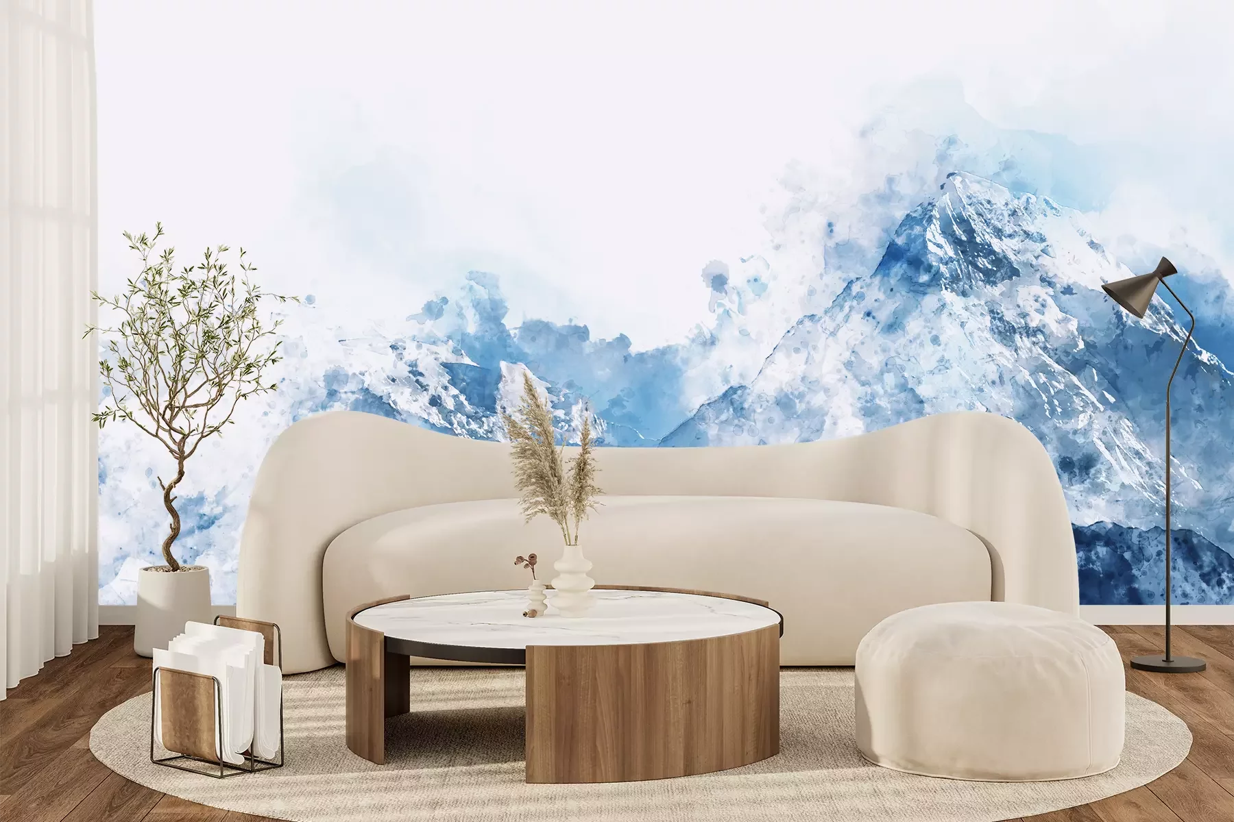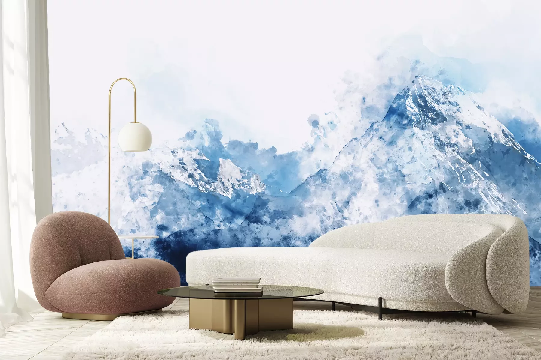 Blauwe aquarel bergen