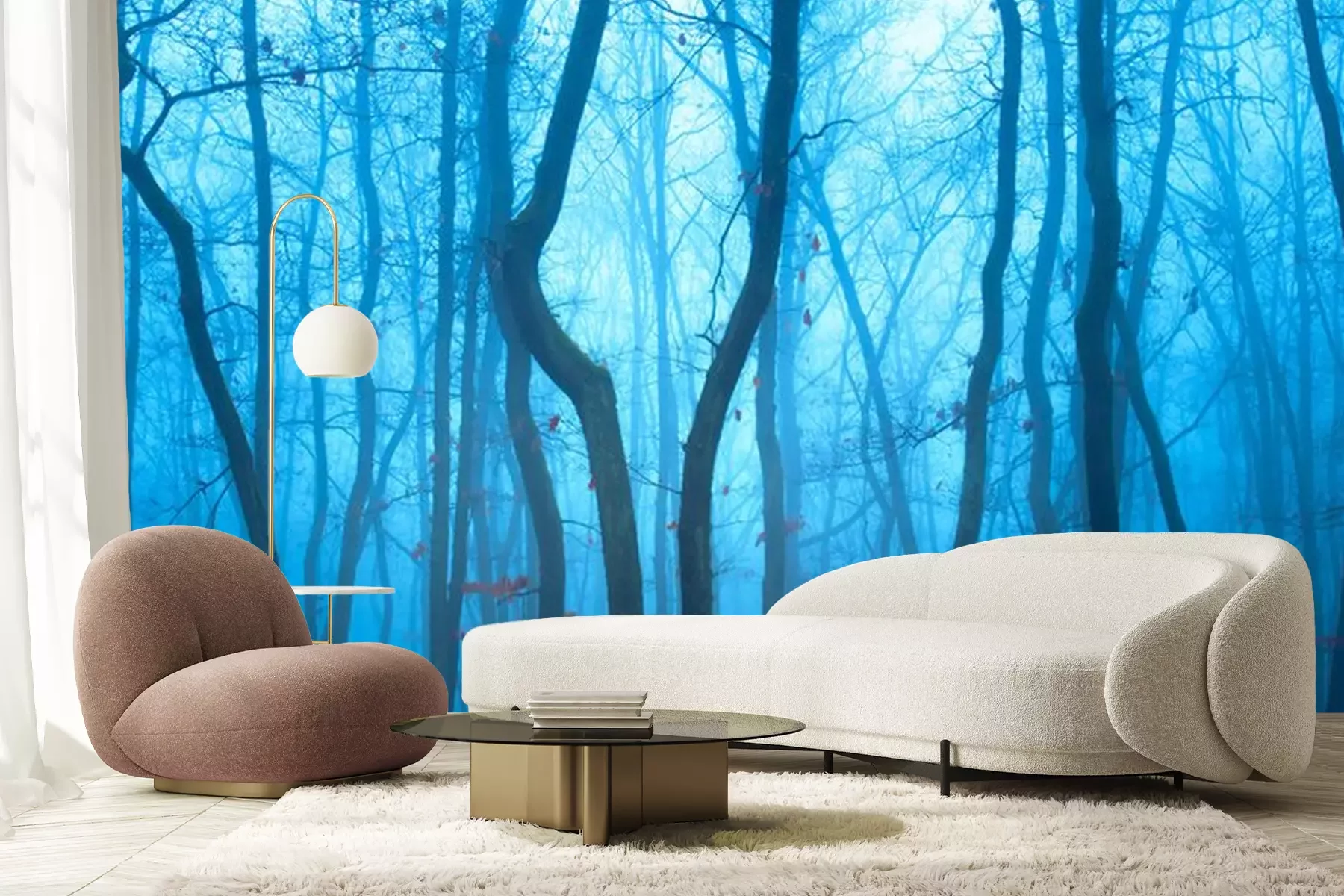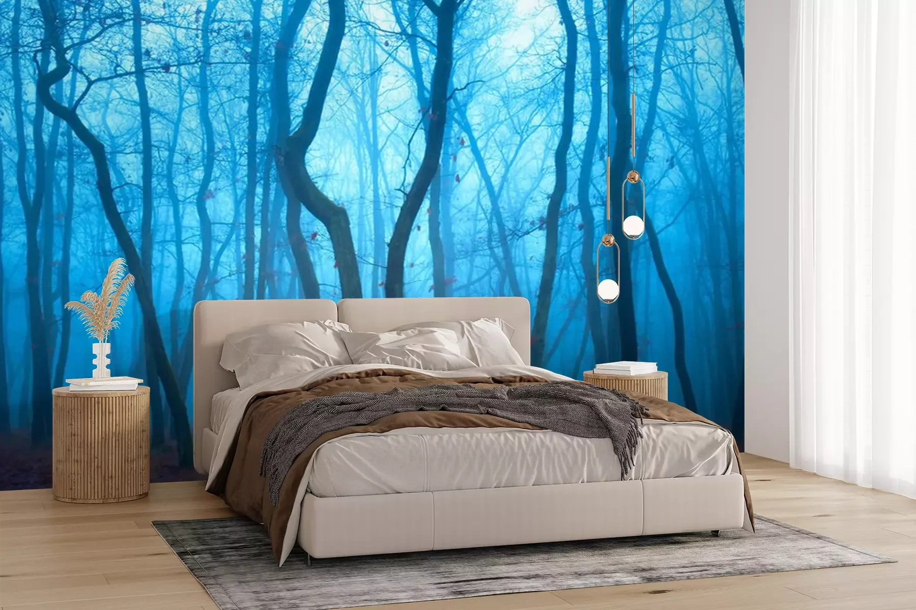 Fotobehang Blauwe avond in het bos
