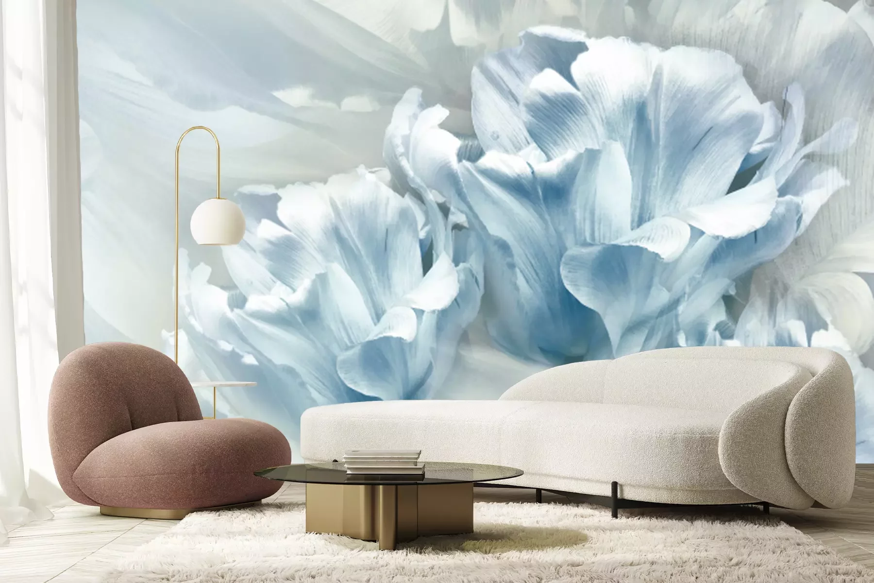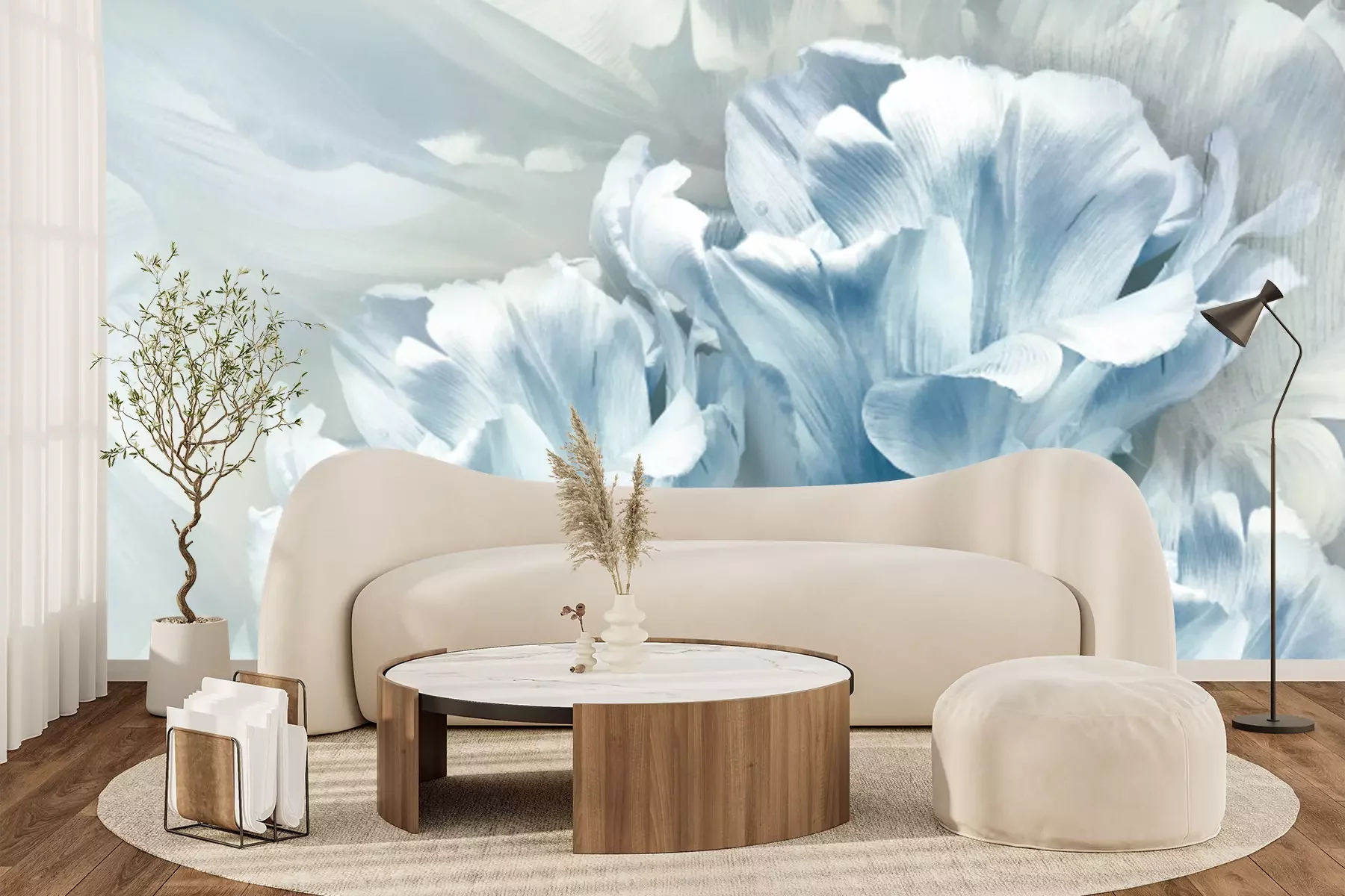 Fotobehang Blauwe bloemen van de lentetulpen