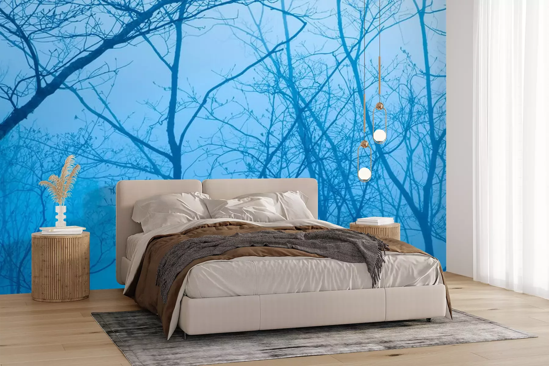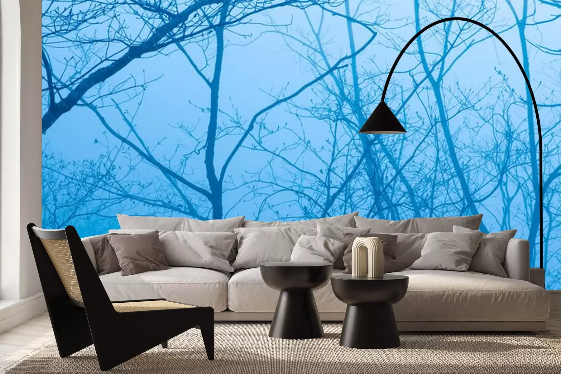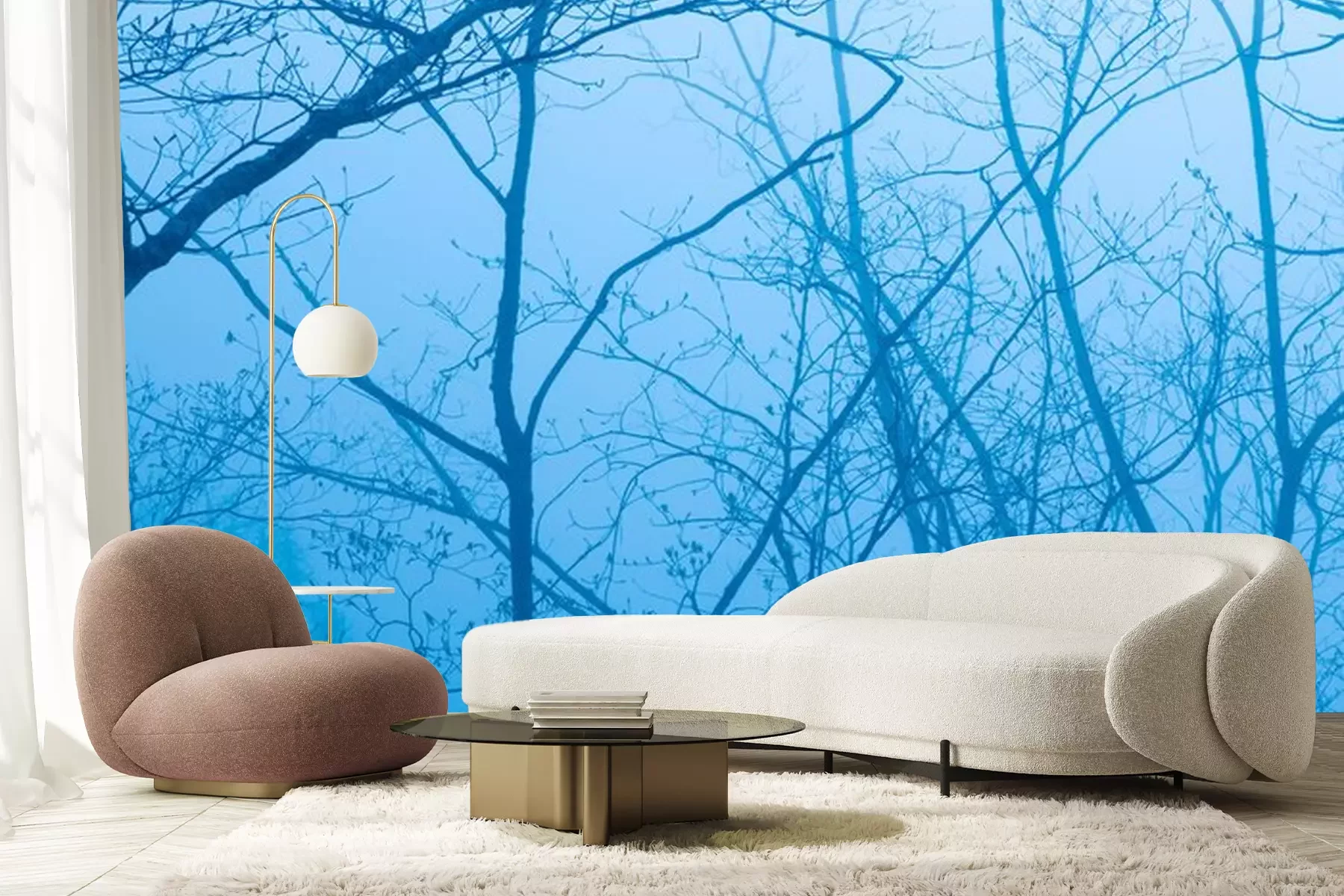 Fotobehang Blauwe lucht tussen boomtakken