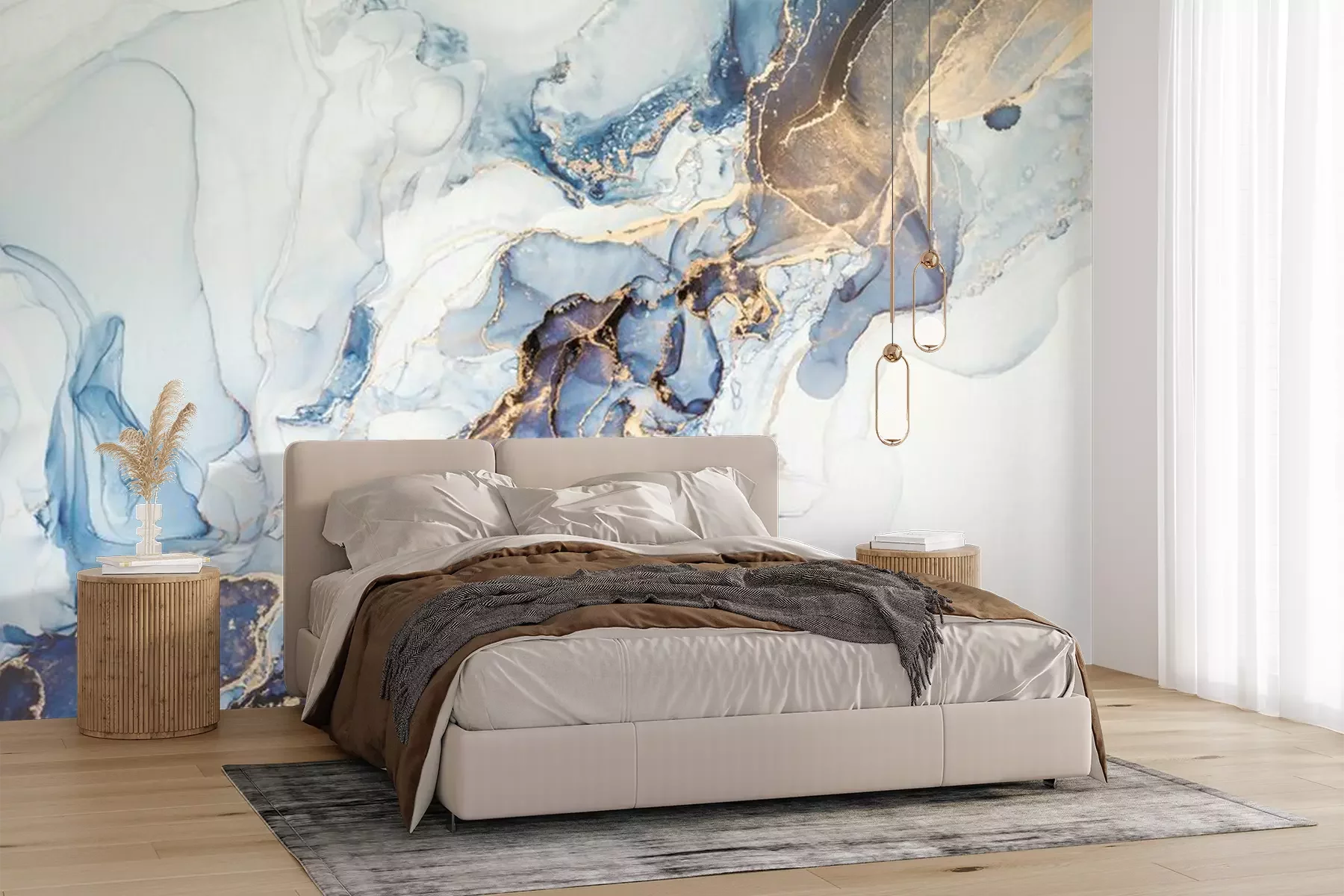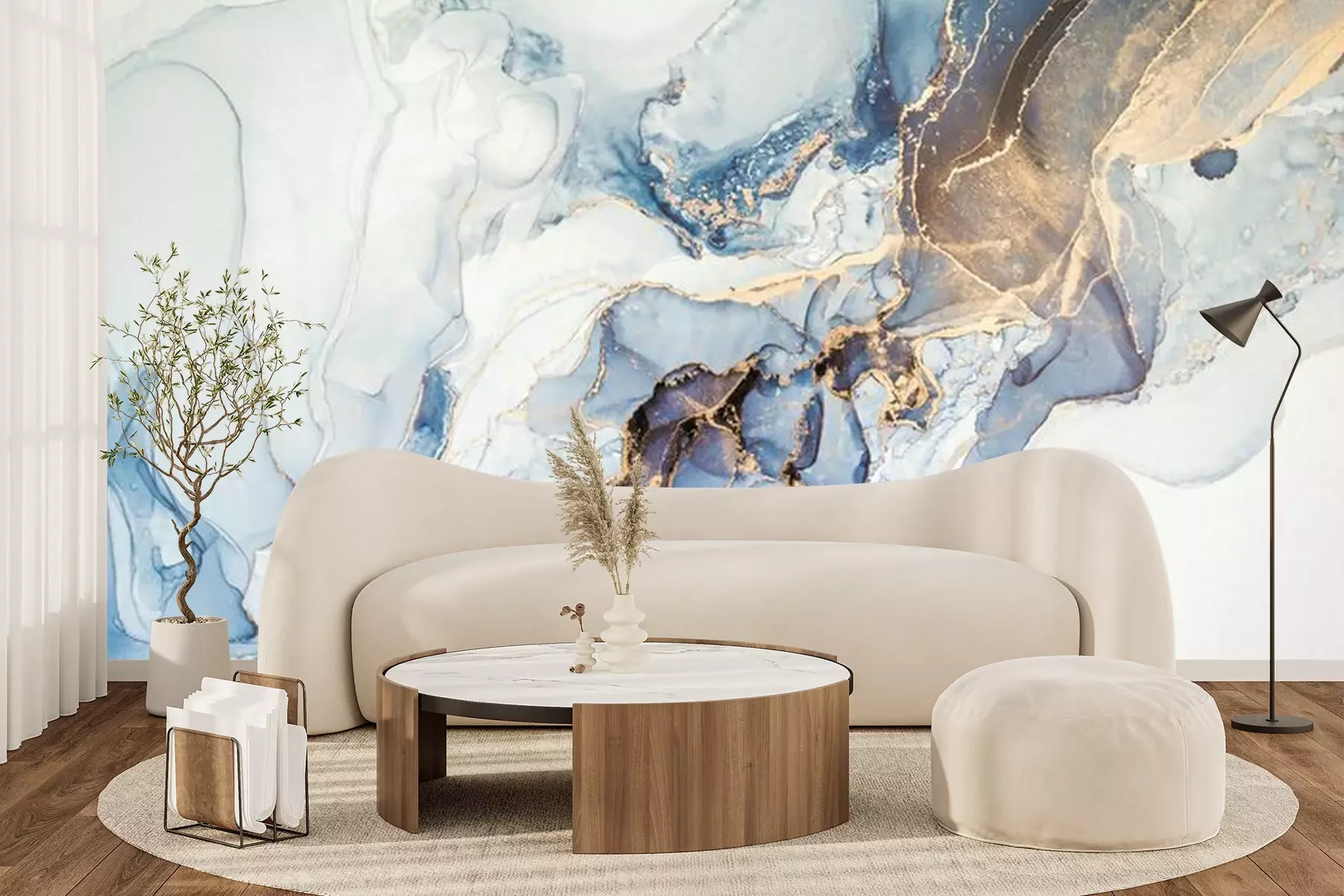 Abstract marmer met blauwe en gouden kleurenProbleemloze bezorging verzorgd door vertrouwde vervoerders