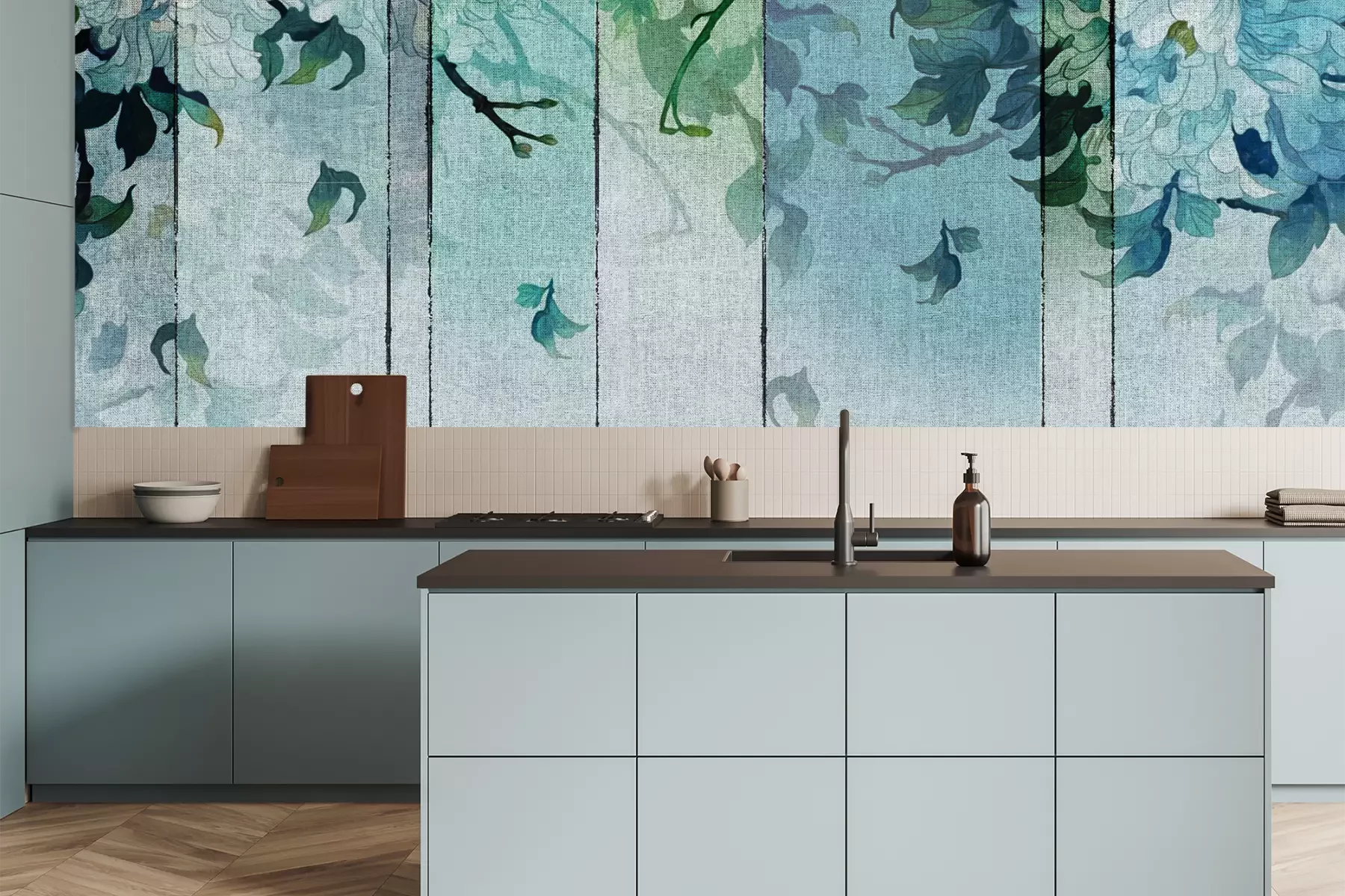 Het materiaal Premium is een glad vinyl op vlies, dat bestand is tegen uitrekken en vervorming. Het is dampdoorlatend – de muren kunnen vrij ademen – waardoor het geschikt is voor gebruik in de keuken en badkamer. Bij vervuiling kan het materiaal worden afgenomen met een vochtige doek. De maximale breedte van één baan bedraagt 95 of 105 cm, afhankelijk van de beschikbaarheid. Montage vindt plaats met de rand-aan-rand methode, wat een esthetisch resultaat zonder zichtbare naden oplevert. Omdat de lijm rechtstreeks op de muur wordt aangebracht, verloopt de installatie van het fotobehang snel en eenvoudig.