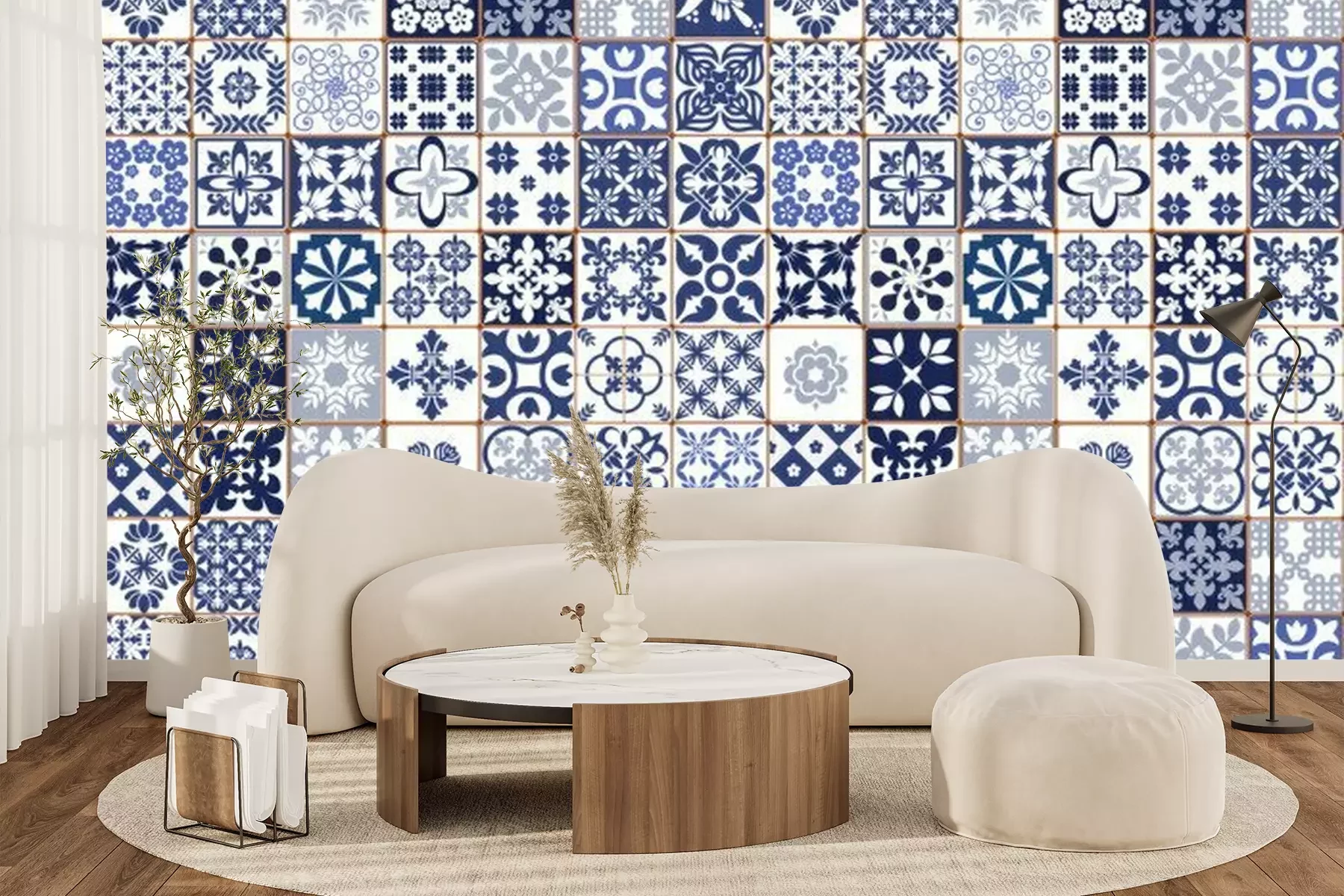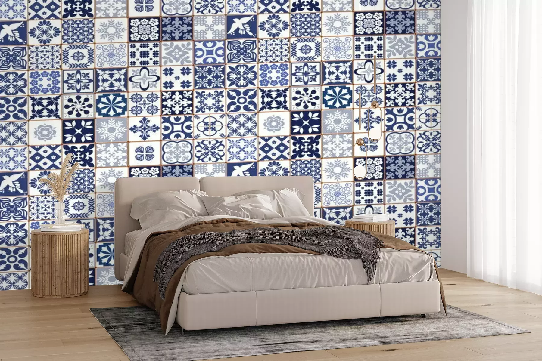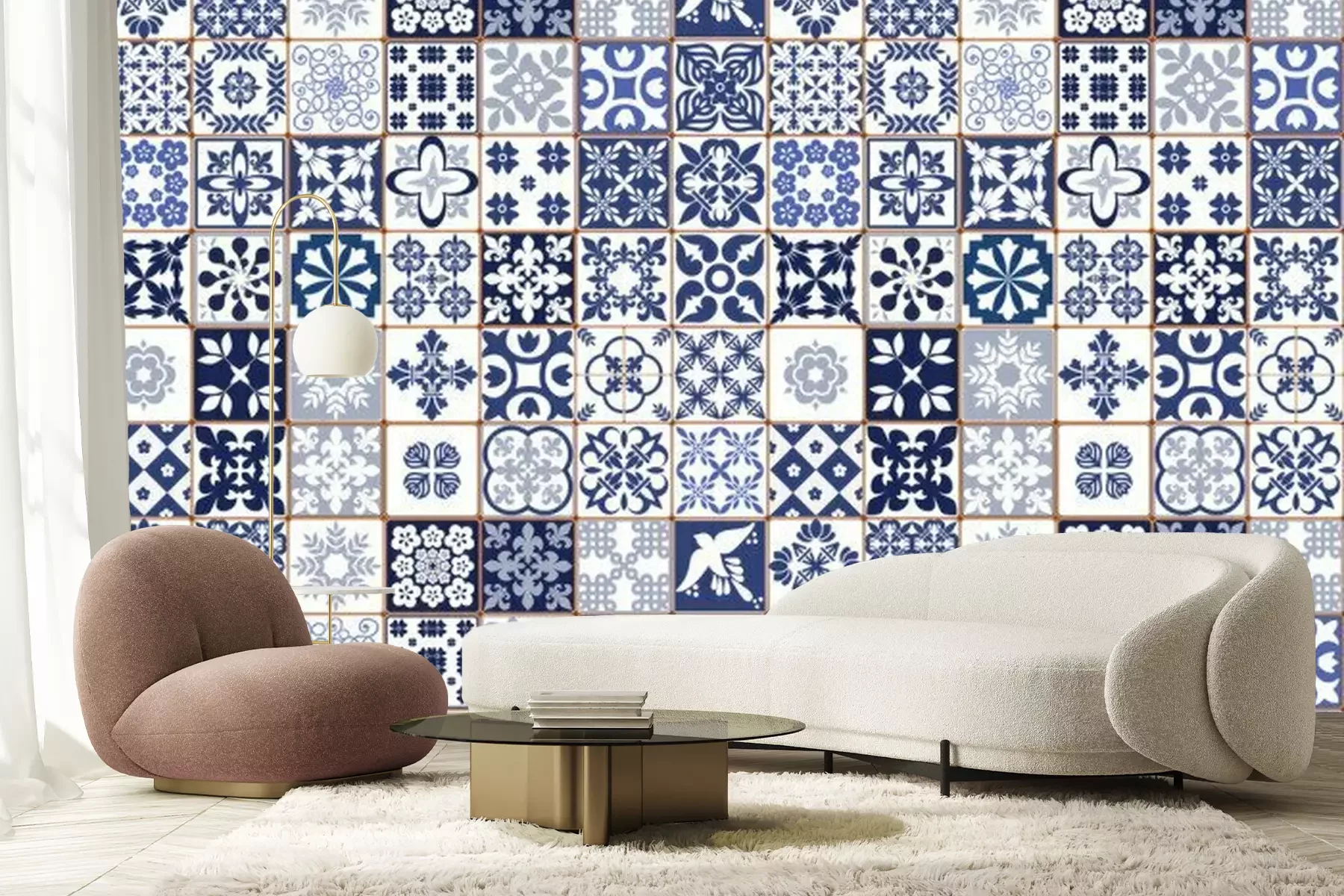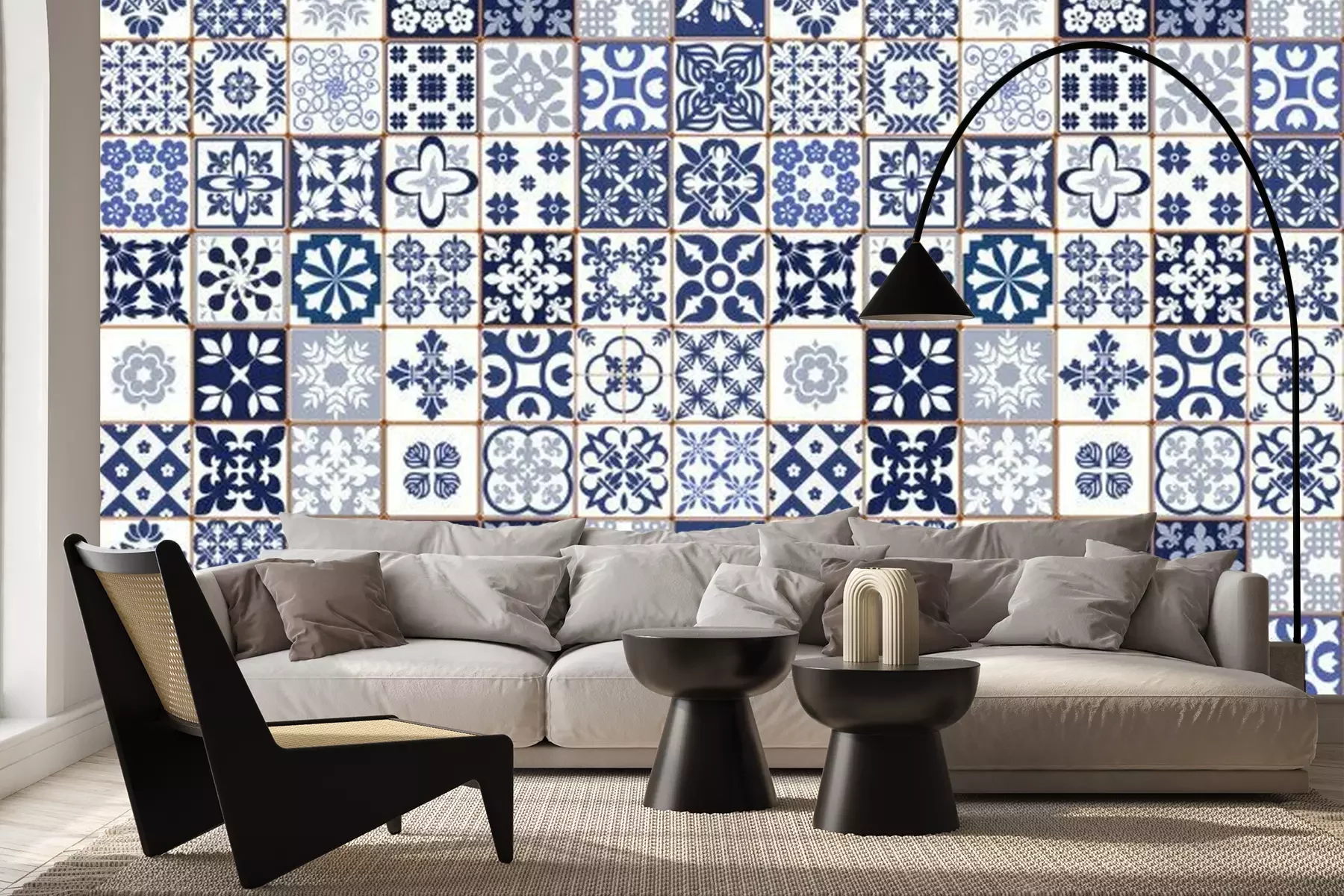 Fotobehang Blauwe Portugese tegels patroon - Azulejos vector, mode interieur design tegels