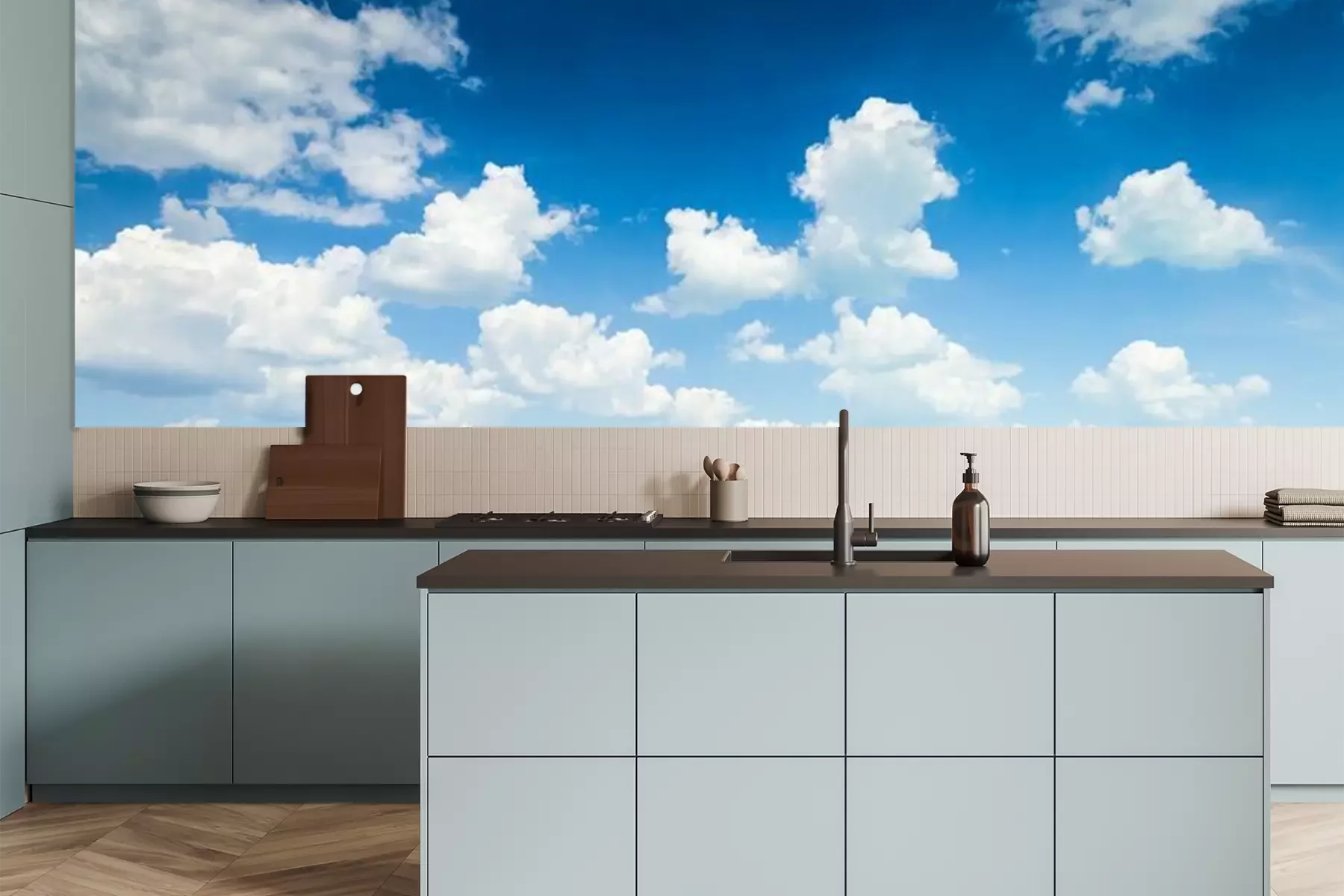 Blauwe luchtwolken van dichtbijFotobehang