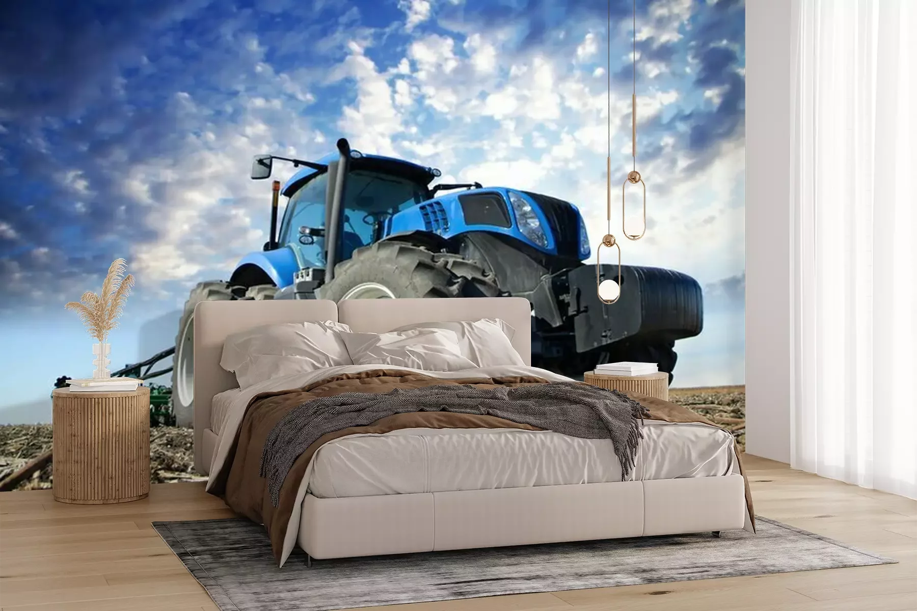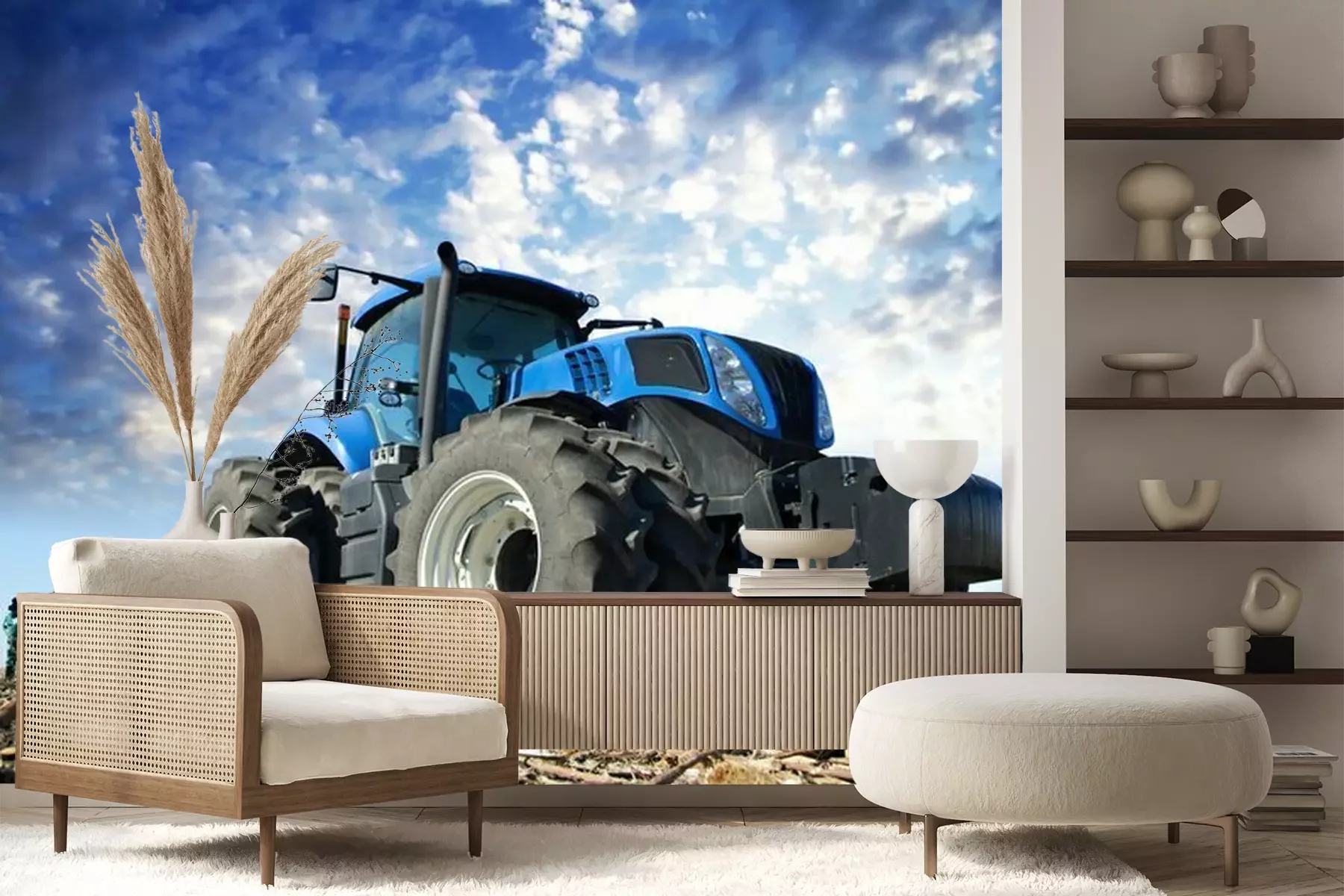 Blauwe tractor met ploegProbleemloze bezorging verzorgd door vertrouwde vervoerders