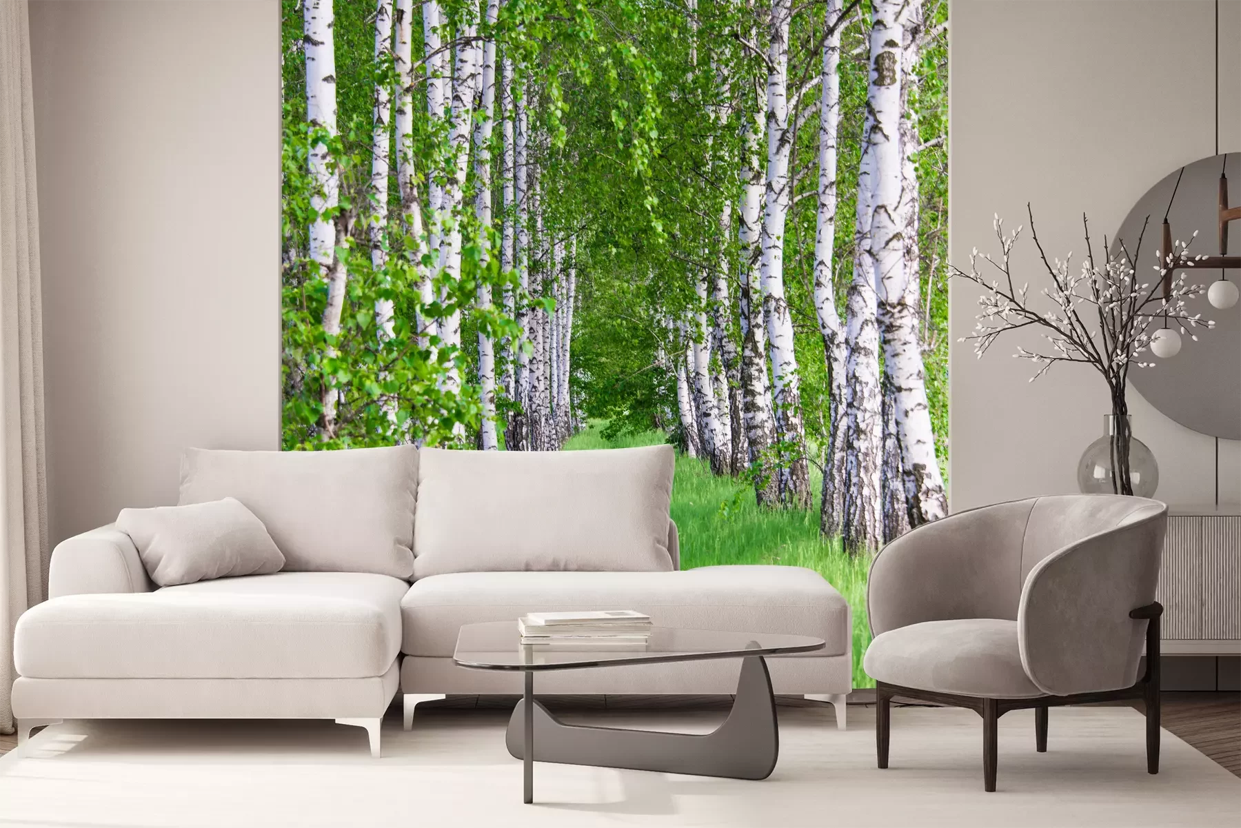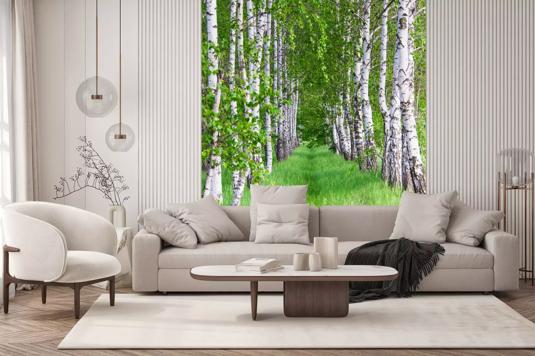 Het materiaal Premium+ is een gestructureerd vinyl op vlies met een gewicht van 255 g/m², dat kleine oneffenheden in de muur effectief camoufleert. De subtiele structuur van fijn zand geeft het oppervlak een exclusieve uitstraling, terwijl de halfmatte afwerking de diepte van de kleuren benadrukt. Het materiaal is dampdoorlatend, waardoor het ook in de keuken en badkamer kan worden gebruikt. De maximale breedte van één baan bedraagt 100 cm – bij grotere afmetingen wordt het fotobehang in meerdere gelijke banen verdeeld. De lijm wordt direct op de muur aangebracht en het behang wordt rand-aan-rand geplakt, wat zorgt voor een esthetisch resultaat zonder zichtbare naden. Het oppervlak kan gemakkelijk worden schoongemaakt door het voorzichtig af te nemen met een vochtige doek.