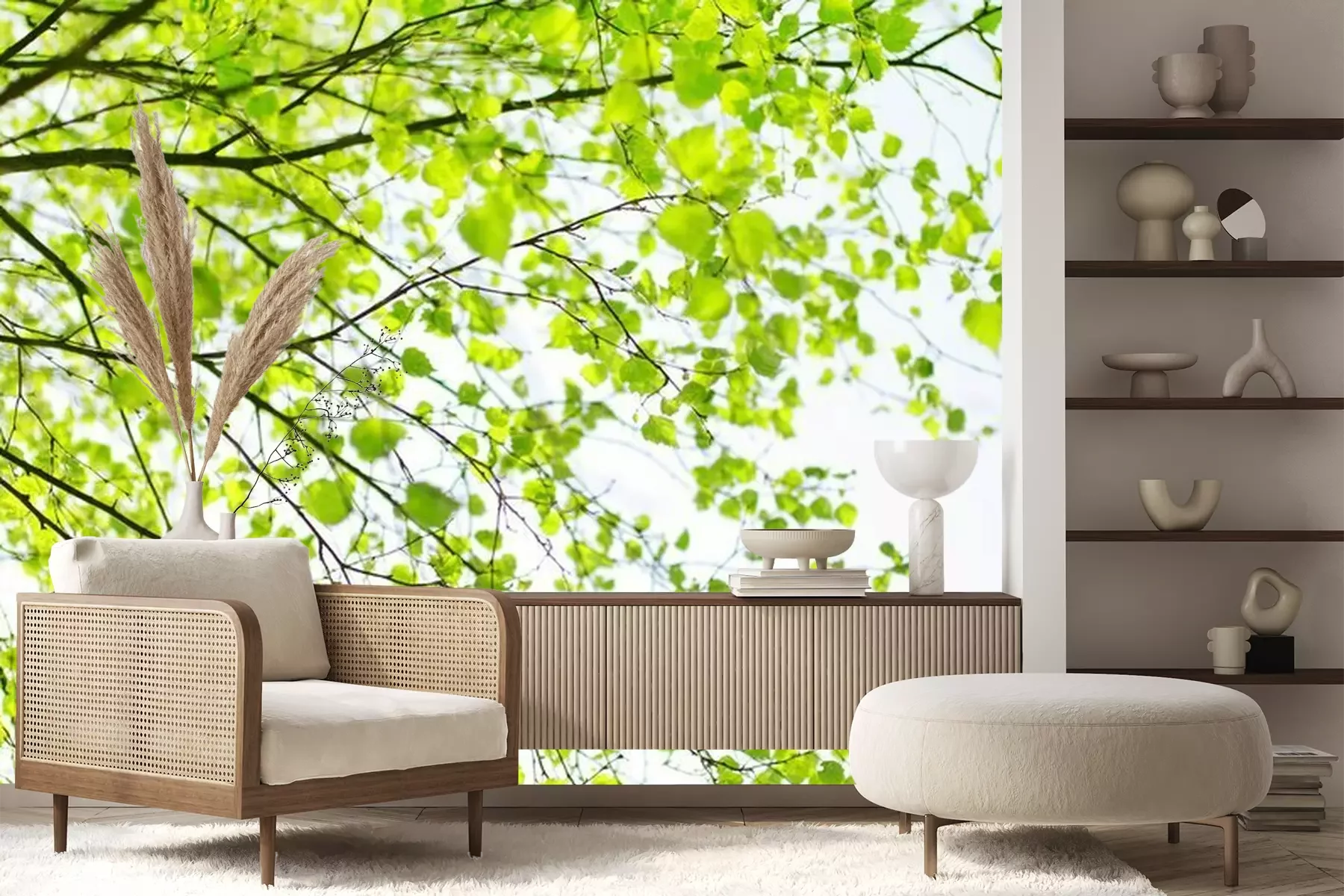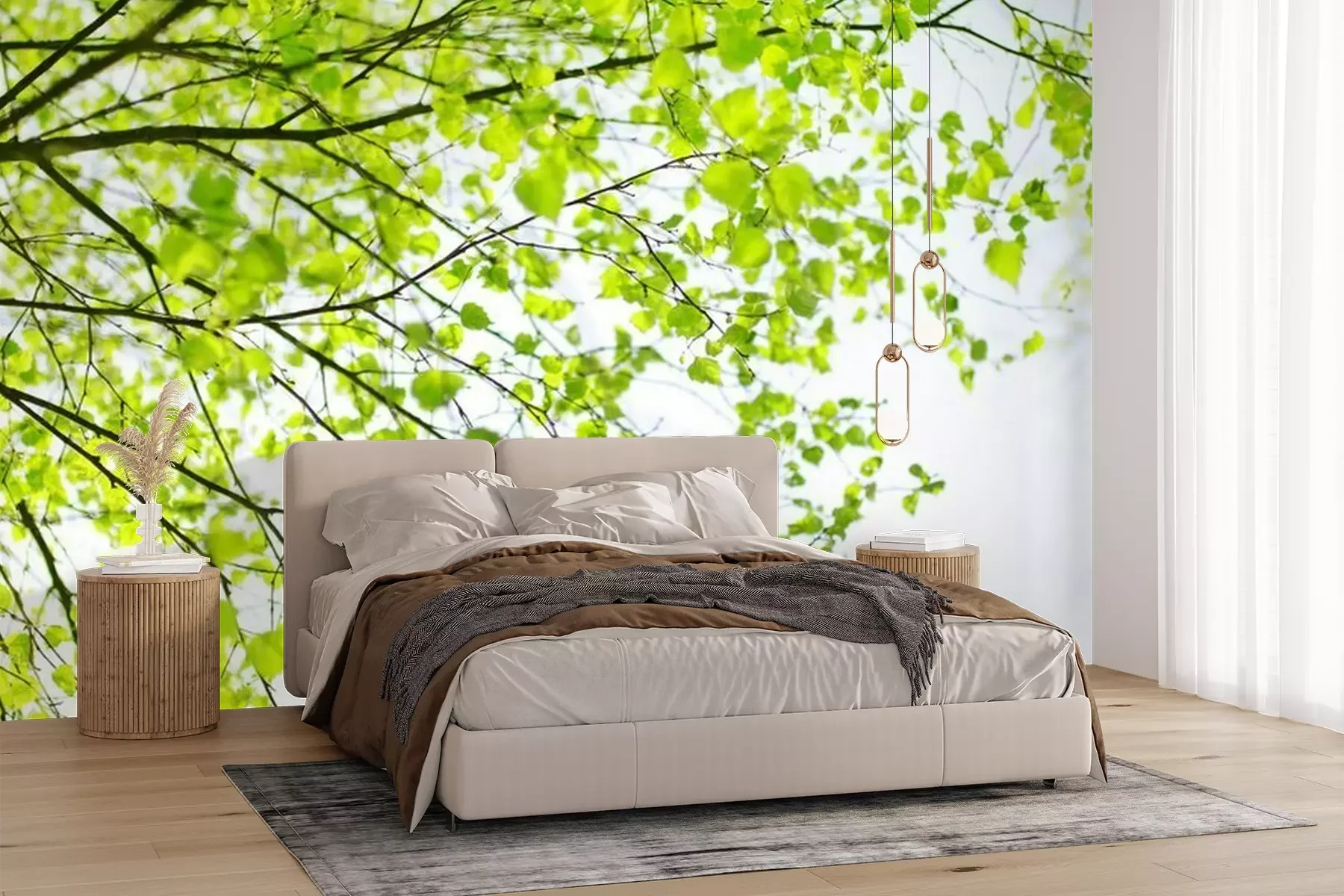 Het materiaal Premium+ is een gestructureerd vinyl op vlies met een gewicht van 255 g/m², dat kleine oneffenheden in de muur effectief camoufleert. De subtiele structuur van fijn zand geeft het oppervlak een exclusieve uitstraling, terwijl de halfmatte afwerking de diepte van de kleuren benadrukt. Het materiaal is dampdoorlatend, waardoor het ook in de keuken en badkamer kan worden gebruikt. De maximale breedte van één baan bedraagt 100 cm – bij grotere afmetingen wordt het fotobehang in meerdere gelijke banen verdeeld. De lijm wordt direct op de muur aangebracht en het behang wordt rand-aan-rand geplakt, wat zorgt voor een esthetisch resultaat zonder zichtbare naden. Het oppervlak kan gemakkelijk worden schoongemaakt door het voorzichtig af te nemen met een vochtige doek.