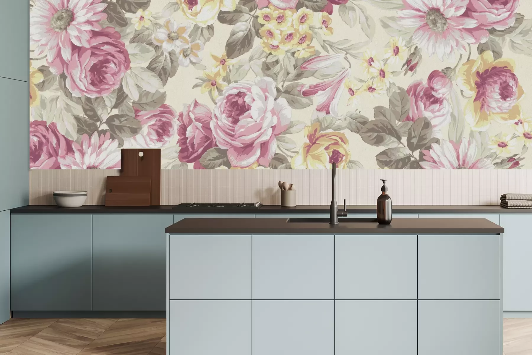 Het materiaal Premium is een glad vinyl op vlies, dat bestand is tegen uitrekken en vervorming. Het is dampdoorlatend – de muren kunnen vrij ademen – waardoor het geschikt is voor gebruik in de keuken en badkamer. Bij vervuiling kan het materiaal worden afgenomen met een vochtige doek. De maximale breedte van één baan bedraagt 95 of 105 cm, afhankelijk van de beschikbaarheid. Montage vindt plaats met de rand-aan-rand methode, wat een esthetisch resultaat zonder zichtbare naden oplevert. Omdat de lijm rechtstreeks op de muur wordt aangebracht, verloopt de installatie van het fotobehang snel en eenvoudig.
