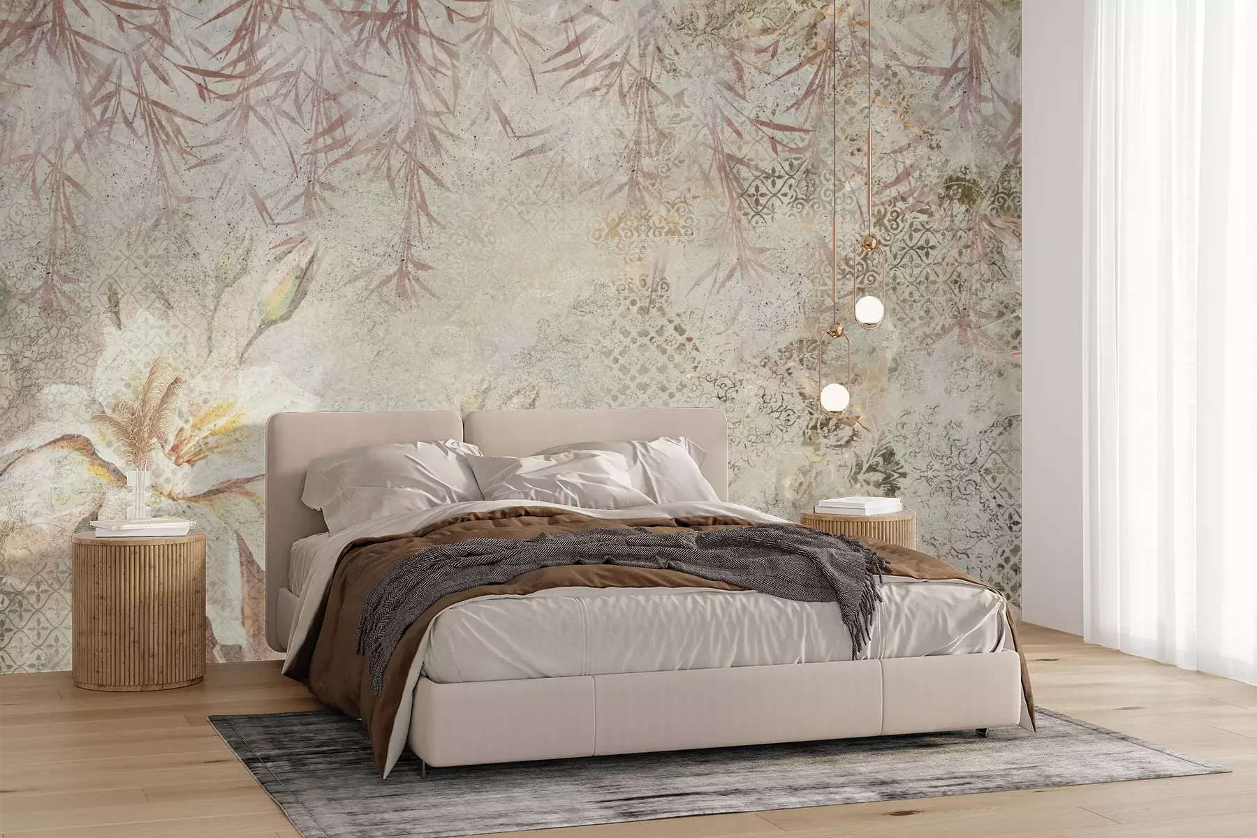 Het materiaal Standard is een hoogwaardig latexmateriaal met een glad, mat oppervlak. Dankzij de HP Latex-printtechnologie zijn de kleuren intens, duurzaam en UV-bestendig, waardoor het patroon jarenlang een onberispelijke uitstraling behoudt. Vervuilde oppervlakken kunnen voorzichtig worden afgeveegd met een droge doek. De maximale breedte van één baan bedraagt 95 cm of 105 cm – afhankelijk van de bestelde fotobehangbreedte. Bij grotere afmetingen wordt het patroon verdeeld over meerdere gelijkmatige banen. Het fotobehang wordt rand-aan-randaangebracht, wat vrijwel onzichtbare naden mogelijk maakt.